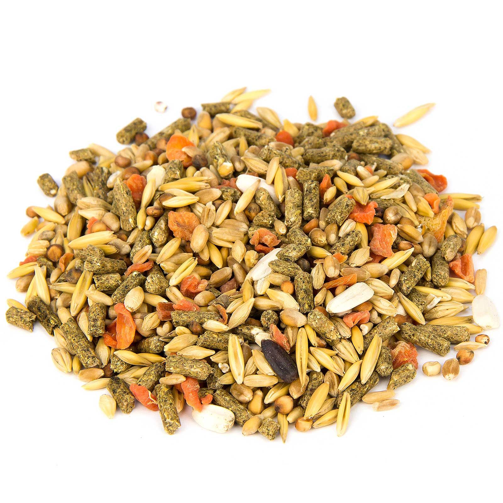 : Búza, zab, sörárpa, zabpehely, tejbegríz, kockára vágott sárgarépa, durva búzakorpa, zöldliszt, fehér napraforgómag, kukoricakoncentrátum, szárított pép, repcekivonatliszt pálcikával, tökmagpogácsa, melasz, lignocellulóz, kalcium-karbonát, monokalcium-foszfát, nátrium-klorid, nátrium-hidrogénkarbonát, magnézium-oxidTárolás: