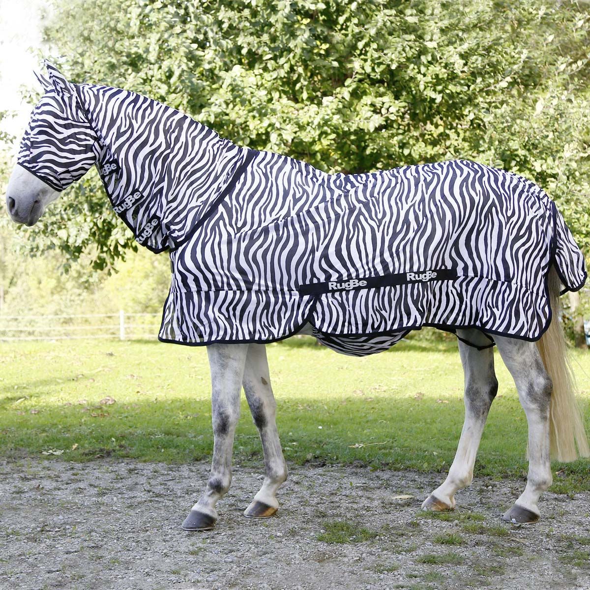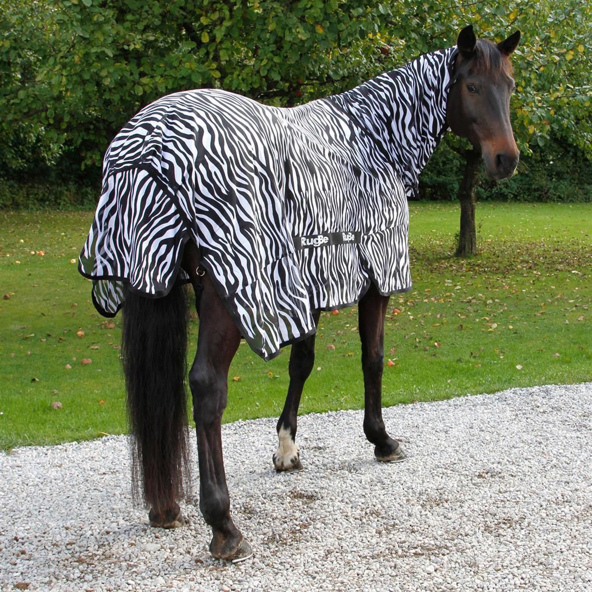 A RugbBe Zebra lószőnyeg egy könnyű légyszőnyeg, integrált nyakrésszel.