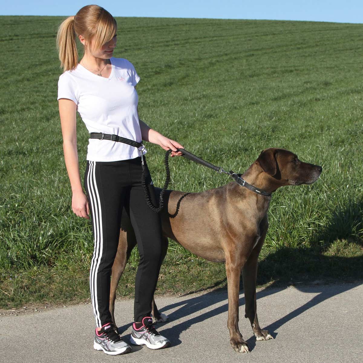 A kutyakocogó póráz állítható hasi övvel/csípőövvel rugalmas pórázzal ideális a kutyájával való futáshoz. A kutya rángatózó húzását a rugalmas kocogó póráz kompenzálja. A futópóráz levehető a derékszíjról, így kényelmesen sétáltathatod is a kutyádat.