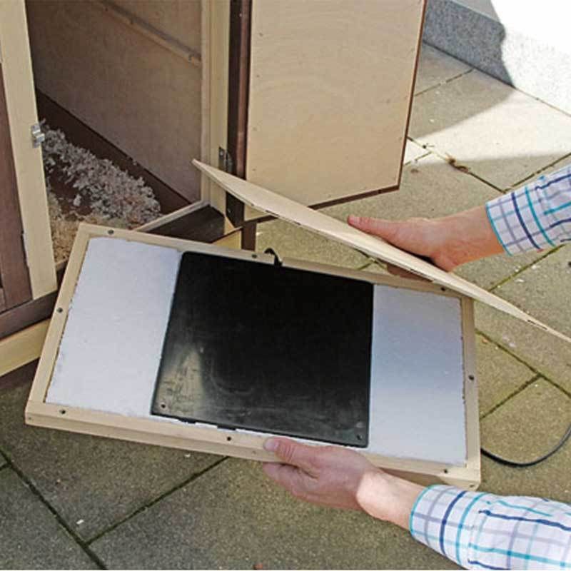 Ez a gumi fűtőlap alkalmas nyúlólakokhoz, kutyaházakhoz, macskaházakhoz, valamint pl. baromfi itatókhoz. A fűtőlap fagymentesen tartja a baromfi itatót, vagy kellemes fészekmeleget biztosít a hideg napokon.