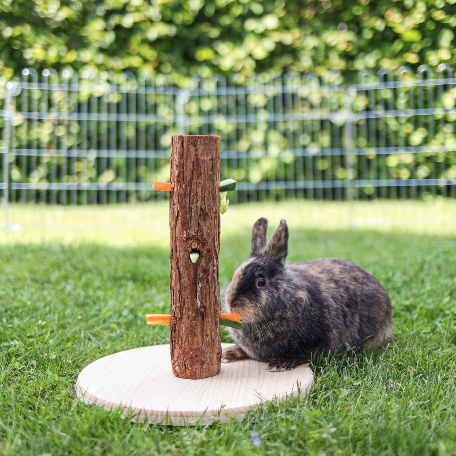 A nyulaknak és nyulaknak szánt játszófa változatosságot hoz és szórakoztató. Az egészséges finomságok körüli nyújtás és nyújtás megtartja rágcsálóit fitten!