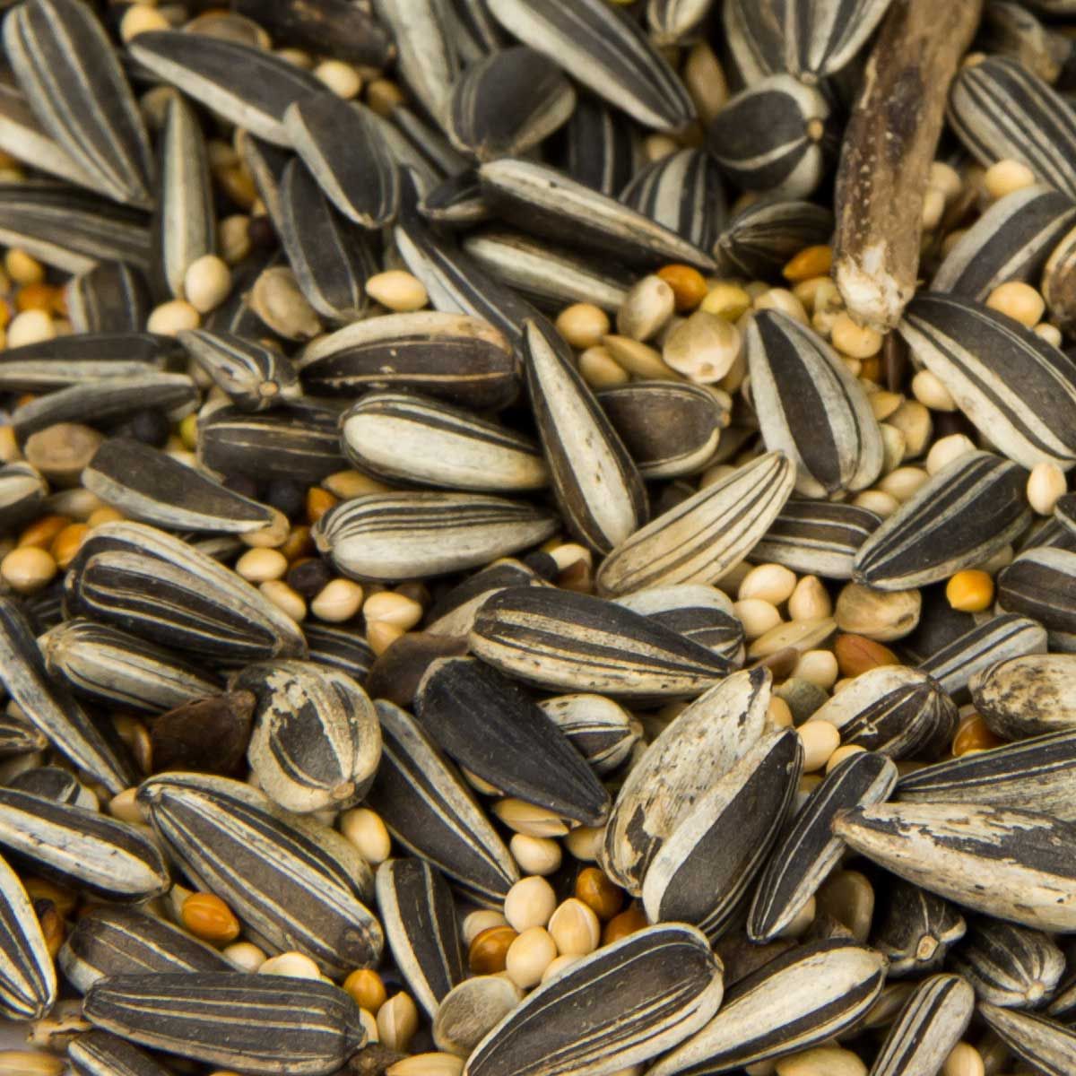 Összetétel: 35 % csíkos napraforgó, 33 % sárga köles, 10 % fényes mag, 7 % kender, 5 % vörös köles, 5 % fekete répa, 2 % lenmag, 2 % hajdina, 1 % milokorn.