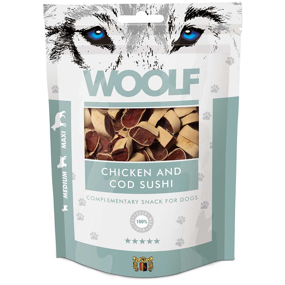 Woolf kutya jutalomfalat csirke és tőkehal sushi