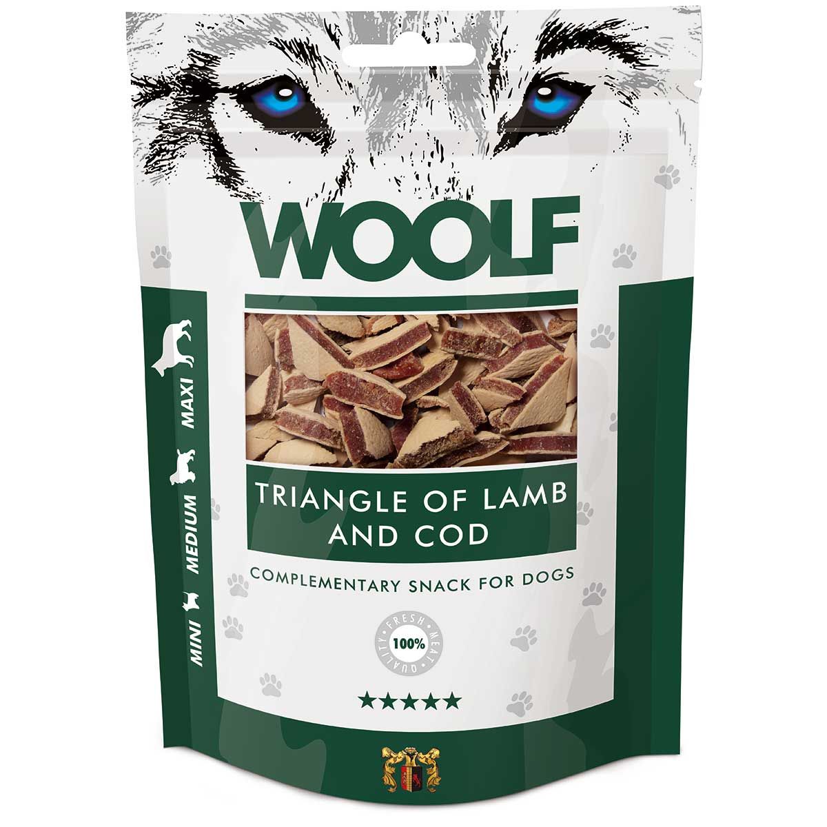 Woolf kutya jutalomfalat bárány és tőkehal háromszögek