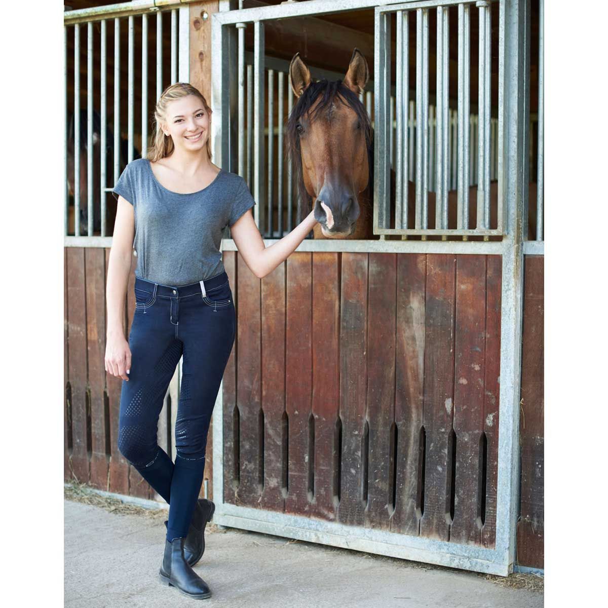 Ahogy a modell neve is mutatja, ez a lovaglónadrág alapfelszerelés azzal a bizonyos extrával minden női lovas számára! Különösen a plusz rugalmasságról van szó, beleértve a Covalliero-grip-et az egész ülőrészen, és ez abszolút alacsony áron! A kiváló minőségű pamut/poliészter/elasztán keverék kényelmes viseletet biztosít, és a természetes pamutszálnak köszönhetően megakadályozza a túlzott izzadást magas hőmérsékleten. A lábszárzár tépőzár nélkül, és az ElastoSoft anyagnak köszönhetően optimális kényelmet biztosít a csizmában.Covalliero BasicPlus egy pillantásra