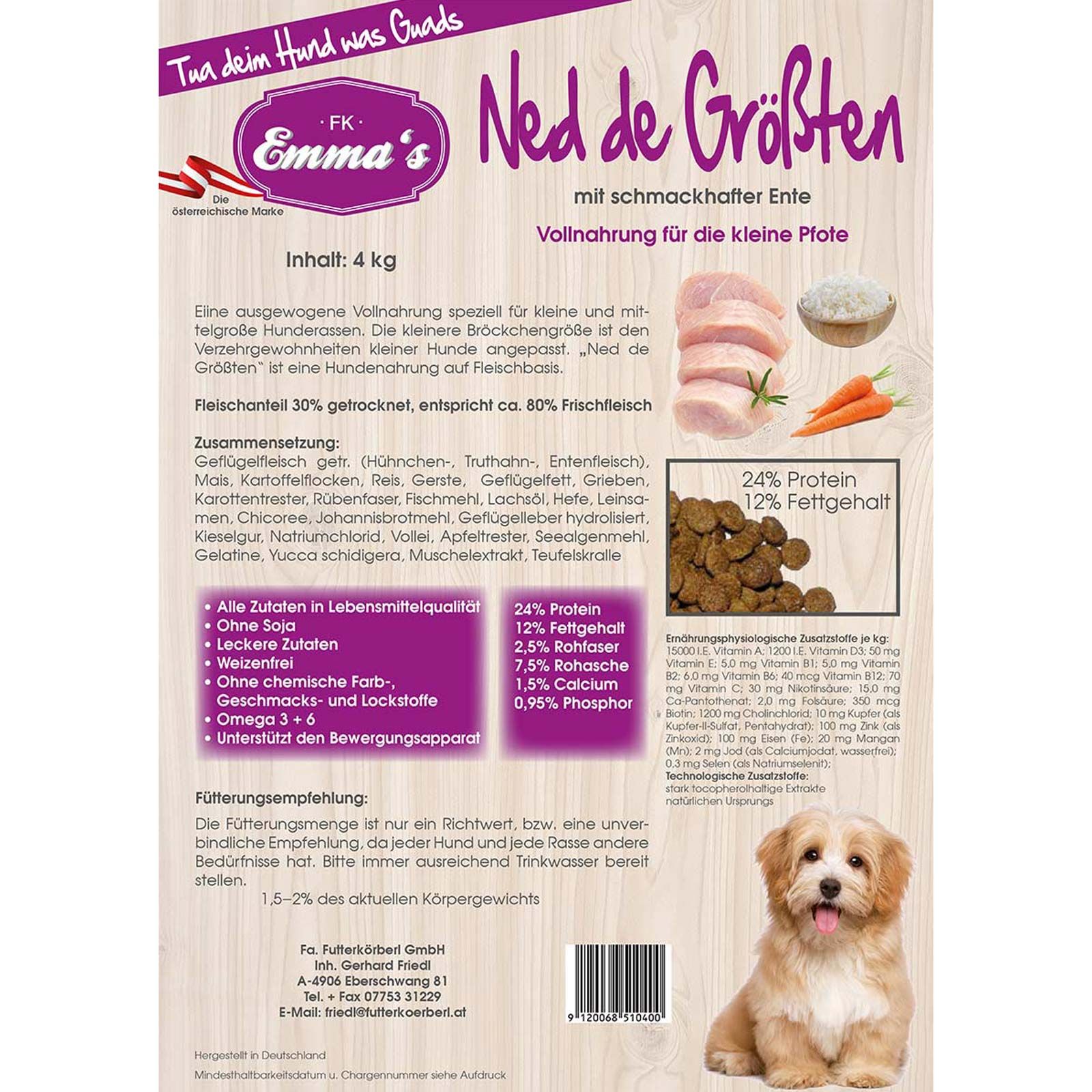 Emmas A Ned de Größten kutyatáp teljes értékű eledel kis és közepes méretű kutyafajták számára.