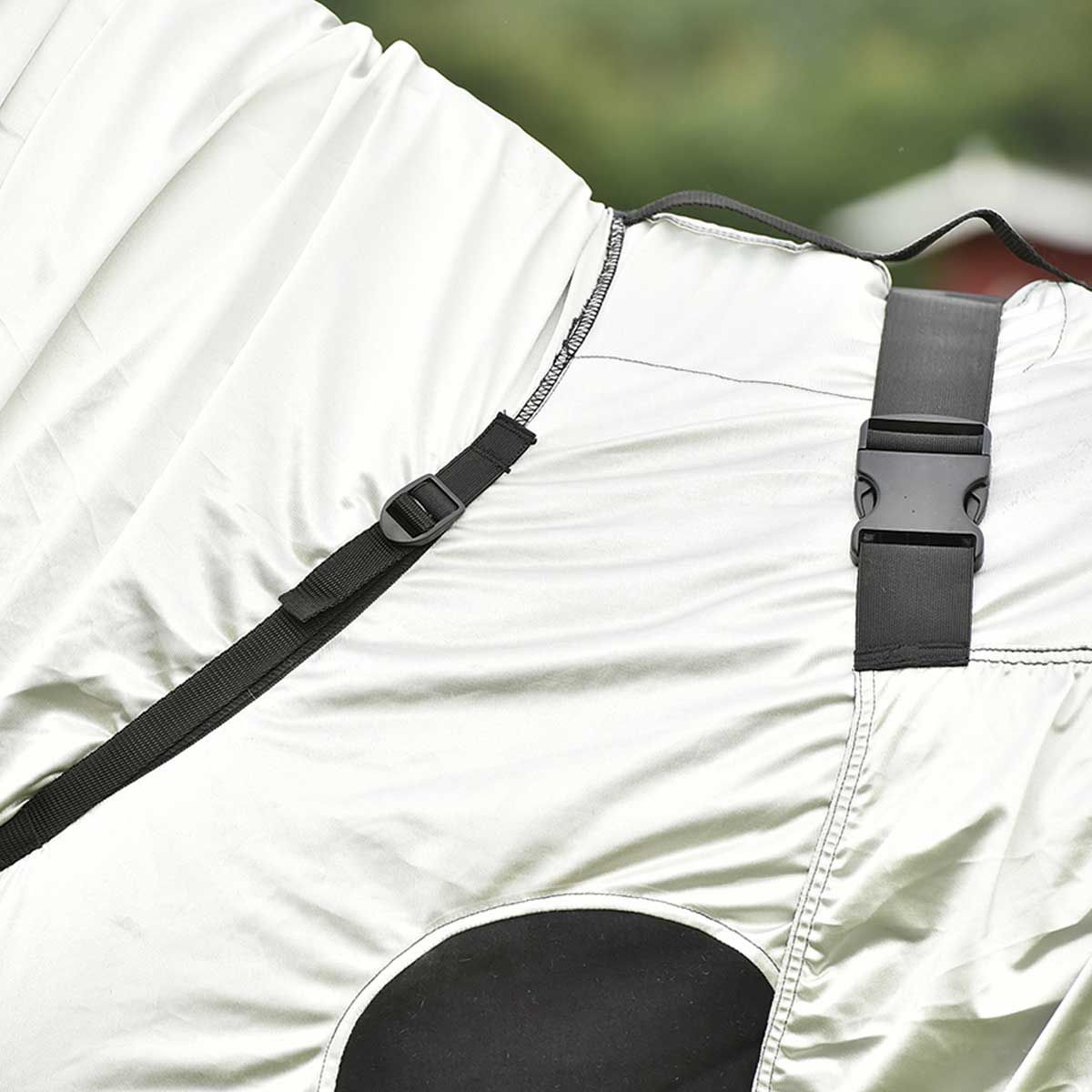 Az édes viszketéstakaró enyhülést hoz, ha lova édes viszketésben szenved. A BUSSE édes viszketési takaró STRONG jó illeszkedéssel győz meg, rugalmas, stabil és légáteresztő anyagból készült. A takaró az egész nyakat, a mellkast és a hasat a farokig befedi, és így a legyek és a csípős rovarok ellen is védelmet nyújt.