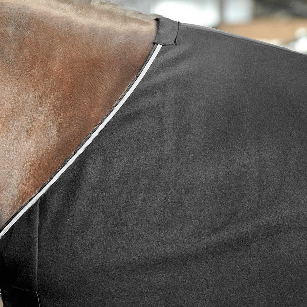 Kényelmes és puha izzadságszőnyeg a BUSSE weboldalról, ideális nedvességszállítással. A nedvszívó anyag elvezeti az izzadságot a lótól, és megvédi a hidegtől és a huzattól. Gyorsan száradó, légáteresztő, izzadságelvezető és klímaszabályozó. A SHOW gyapjúszőnyeg különlegessége a kontrasztos ezüst zsinór körös-körül. A hátközépen található éjjeli és a mellkasi részen található lapos fém csavart zár biztosítja a legjobb tartást.