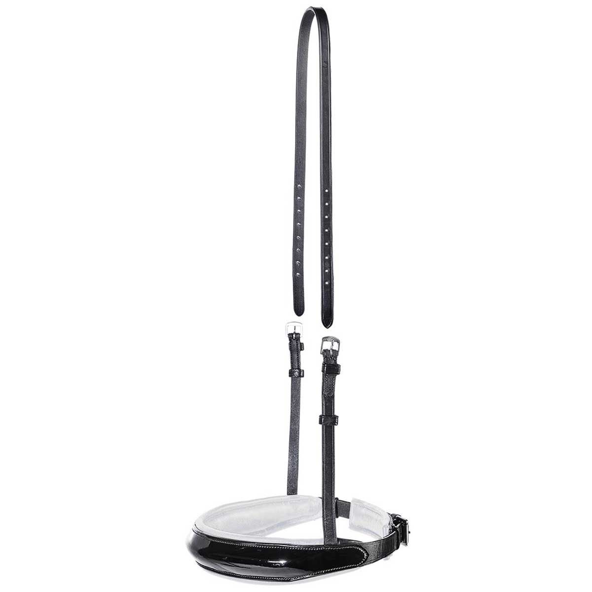 - angol orrszíj oldalirányban kúposodó, valamint extra széles, puhán párnázott orrszíj lakkbőr felülettel, görgős csattal és integrált állkapocsbetéttel