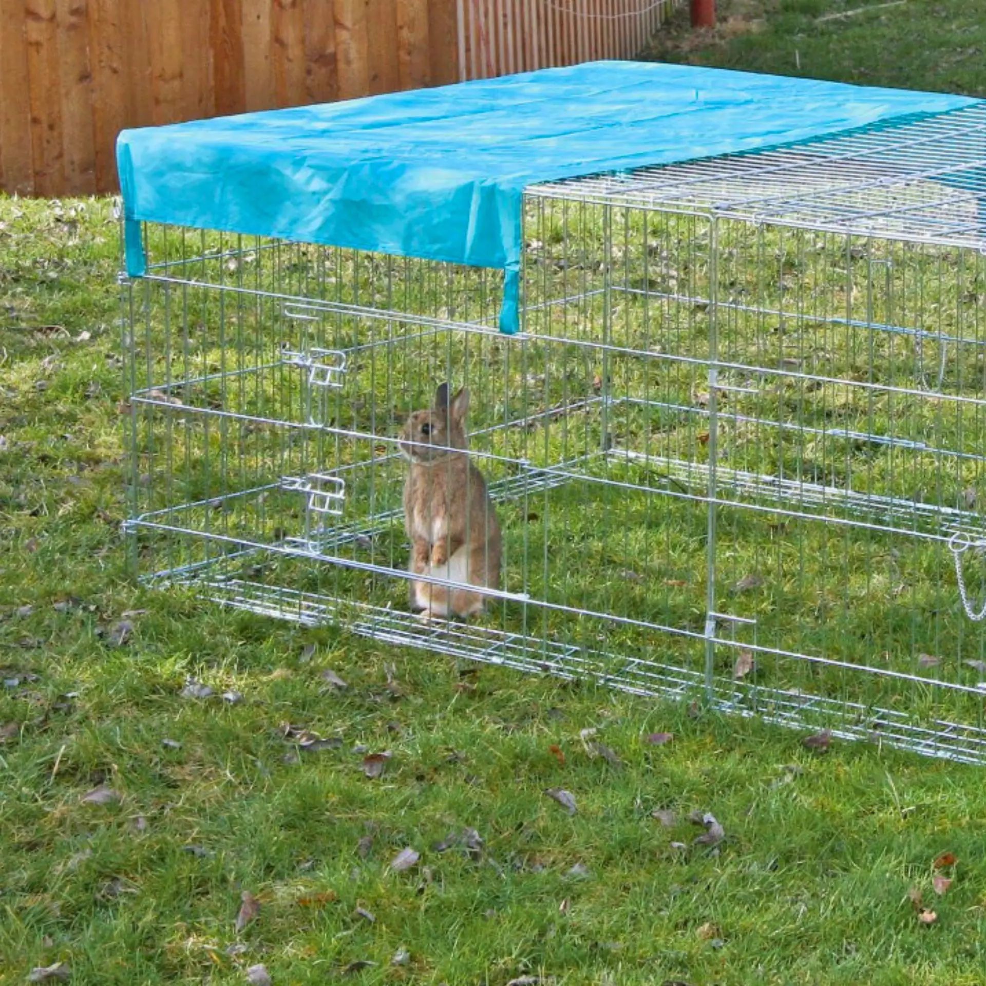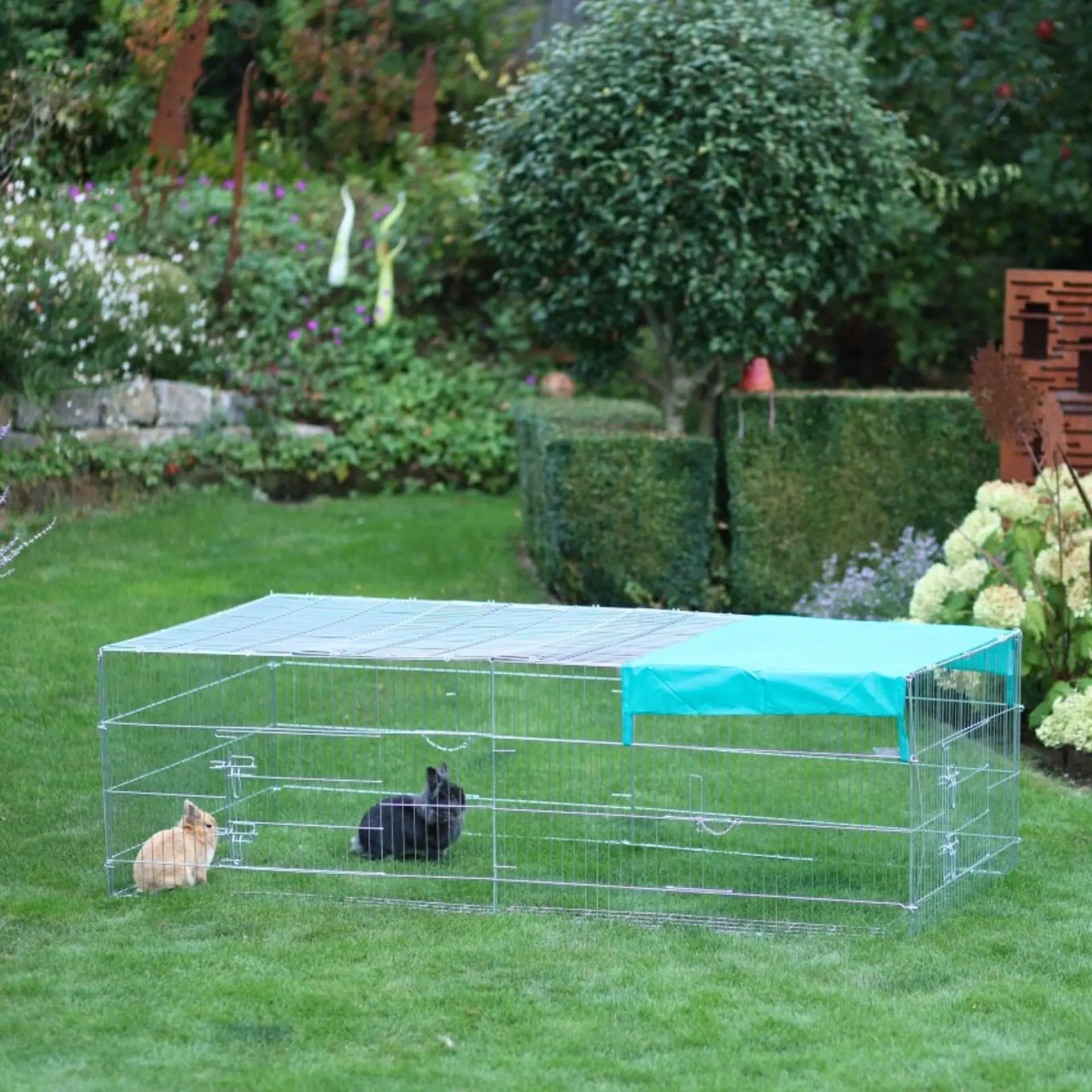 Ez a horganyzott kültéri menekülési akadály teljes körű védelmet nyújt kedvence számára. Az egyedi menekülési akadály a burkolat szélén megakadályozza, hogy kis ásókirályod kiszabaduljon a burkolatból. A rács fedele kinyitható, és megvédi a kicsiket a hívatlan vendégektől, például macskáktól, nyestektől vagy ragadozó madaraktól. Ugyanakkor a burkolatból való kiugrás megakadályozva. A mellékelt napvédelem elegendő árnyékot biztosít a forró napokon.