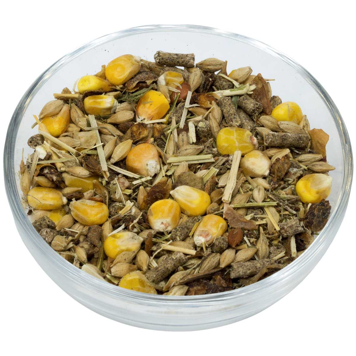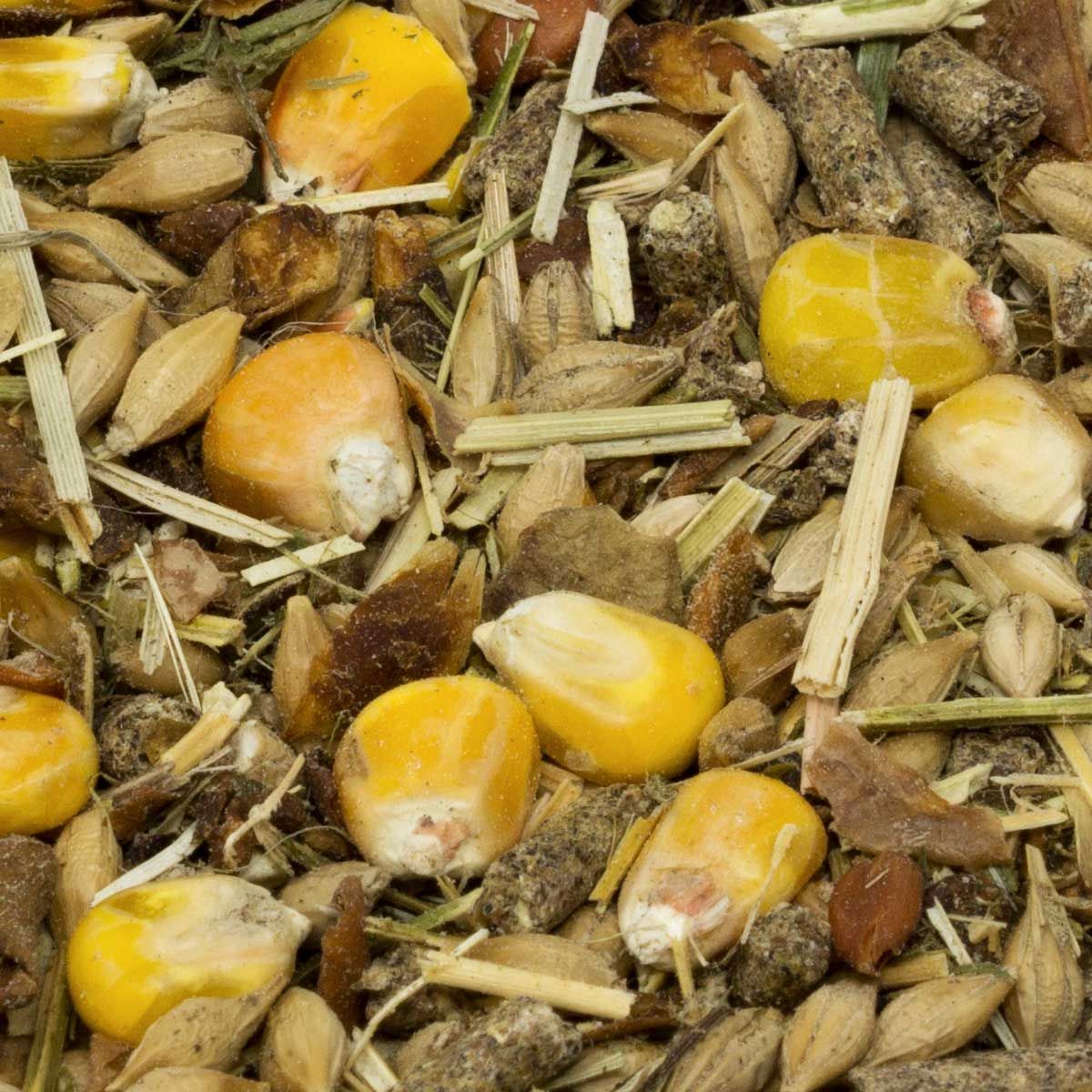 Árpa, almapogácsa, kukorica, lucerna széna vágva, szezámmag-kivonatliszt, repce-kivonatliszt pálcikával, monokalcium-foszfát, zöldliszt, kalcium-karbonát, szójabab, tökmagpogácsa, nátrium-klorid, melasz, napraforgóolaj, magnézium-oxid, sörélesztő