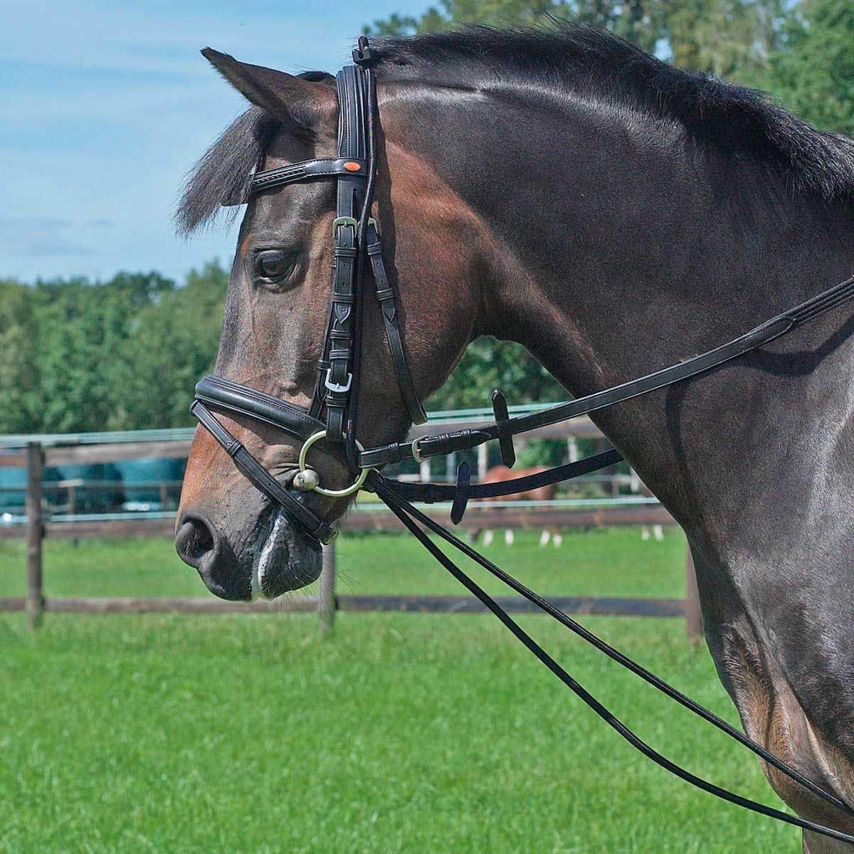 A segédgyeplő kiválasztásakor fontos a lónak megfelelő méret kiválasztása. A végső beállítás közvetlenül a terméken végezhető el, hogy a kiegészítő gyeplő optimálisan illeszkedjen. Ügyeljen arra, hogy a segédgyeplő megfelelően be legyen csavarva.