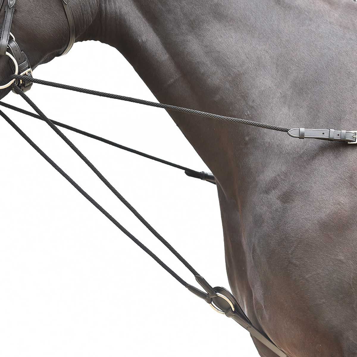 A segédgyeplő kiválasztásakor fontos a lónak megfelelő méret kiválasztása. A végső beállítás közvetlenül a terméken végezhető el, hogy a kiegészítő gyeplő optimálisan illeszkedjen. Ügyeljen arra, hogy a segédgyeplő megfelelően be legyen csavarva.