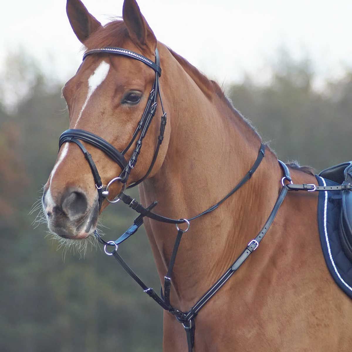 Kiváló minőségű bőr mellvért, masszív kivitelben, beépített, állítható martingálvillával, amely eltávolítható WAHL, megakadályozza a nyereg hátracsúszását ugrás közben.