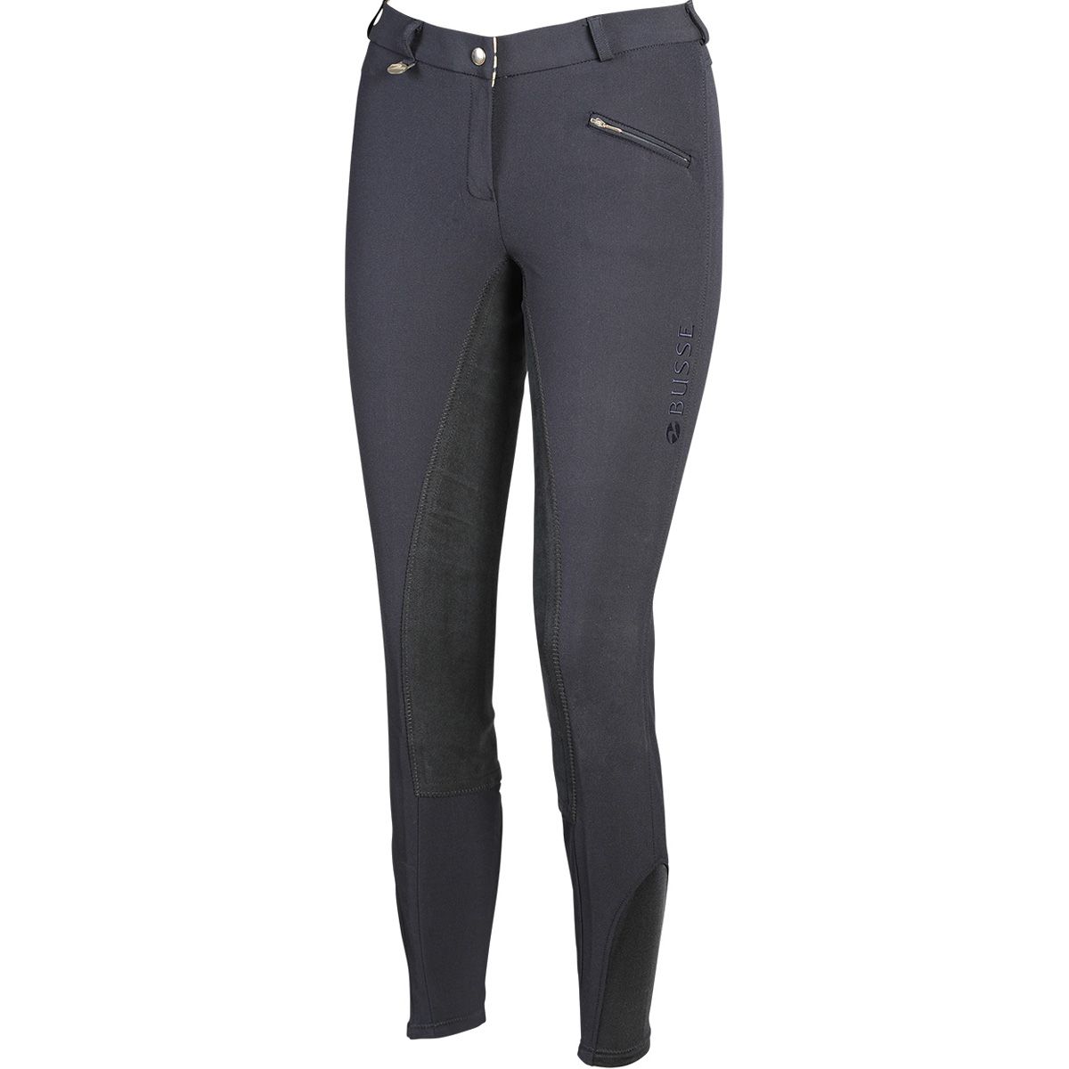 A BUSSE divatos és funkcionális teljes ülésű lovaglónadrágja csípő szabású, és nagyon kényelmes az elasztikus derékpántnak és a flexiblen lábszár mandzsettának köszönhetően. A műbőrből készült csúszásgátló szegély optimális mozgásszabadságot biztosít rugalmasságának köszönhetően, és jó tartást biztosít a nyeregben. A finom kis részletek, mint például az övhurok és a praktikus cipzáras zseb az elején, teszik teljessé a nadrágot.