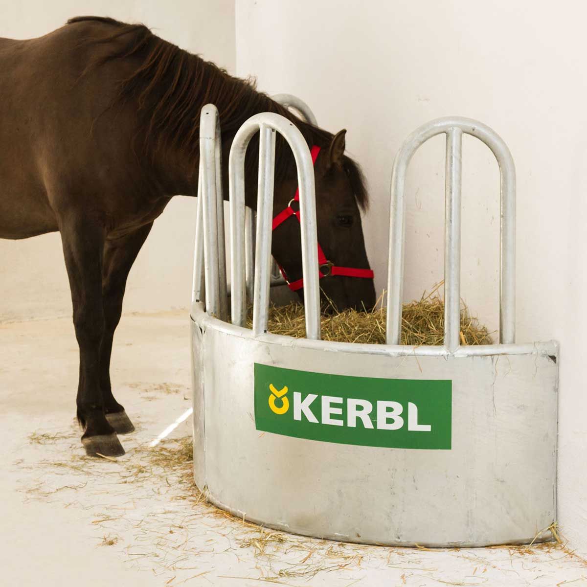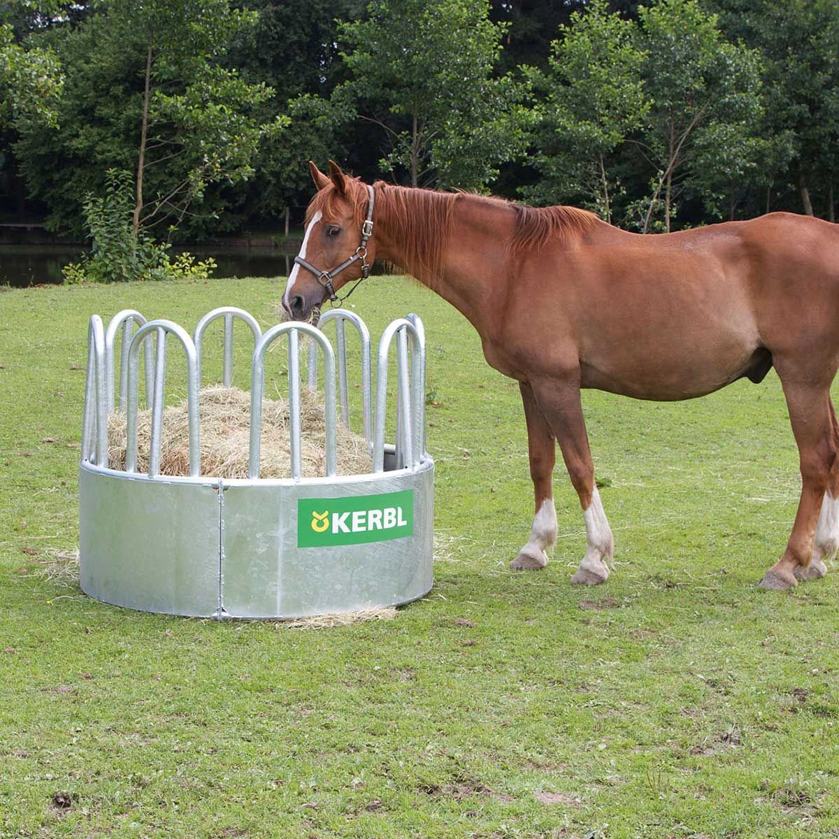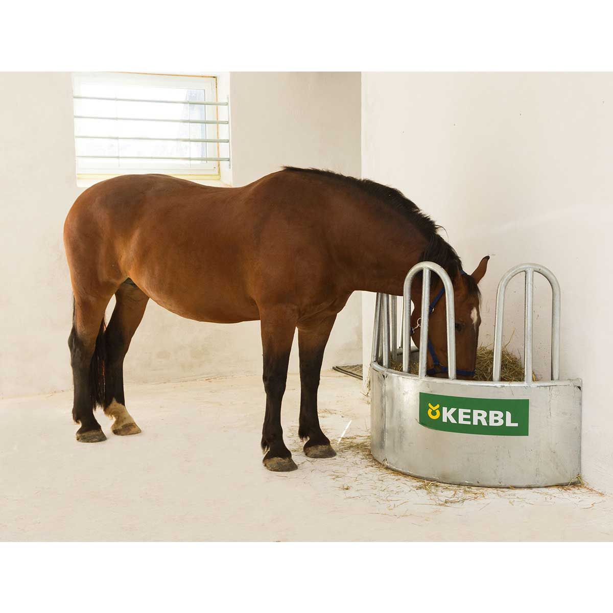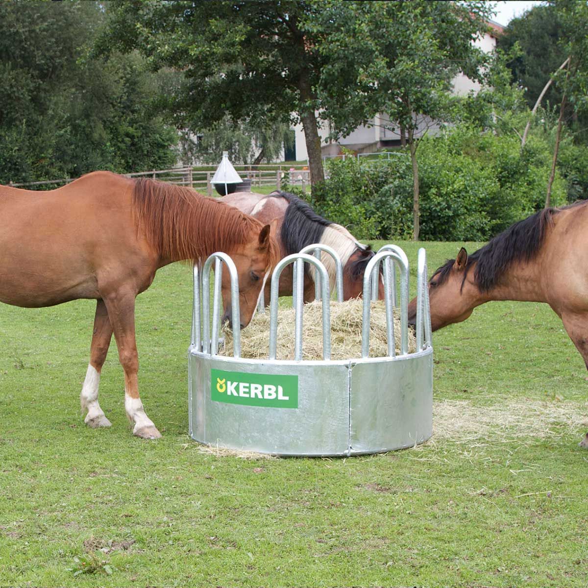 A Kerbl ló körkarám alkalmas laza takarmány vagy kis méretű, nagynyomású bálák etetésére. A 8 palánkkerítéssel ellátott etetőhely elegendő helyet biztosít akár több ló számára is a karámban. A kerek állványt 4 darabos készletben szállítjuk. Szétszerelve egy kombiben is szállítható. Az egyes szegmensek fal- vagy sarokállványok felállítására is felhasználhatók.