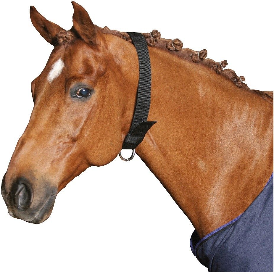 Ez a strapabíró nylon nyakpánt különösen alkalmas azoknak a lovaknak, amelyek nem szeretik, ha felkötik őket.