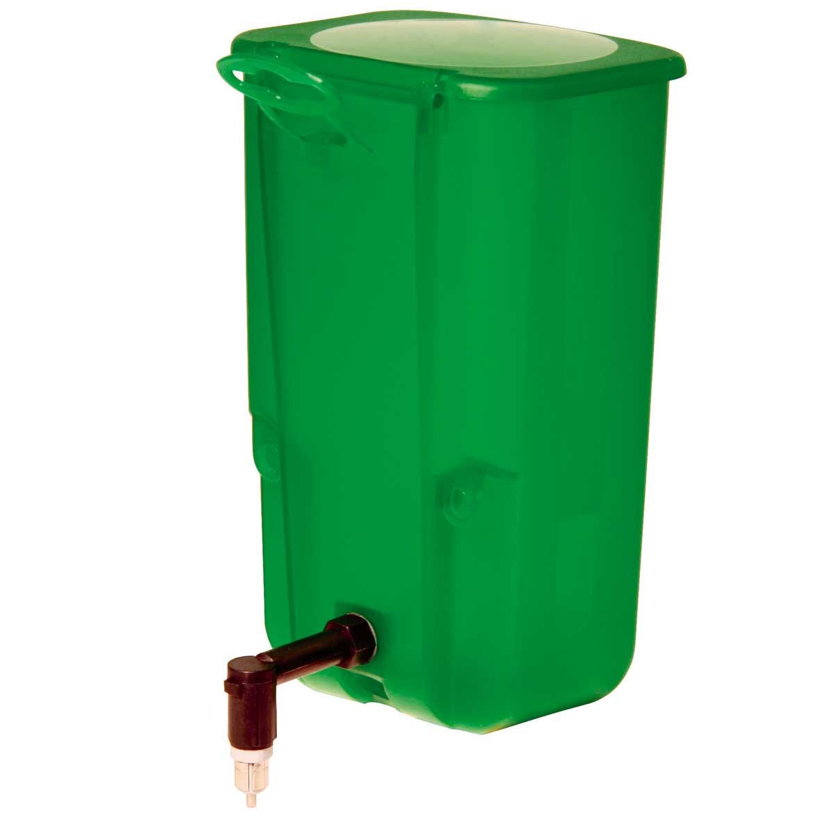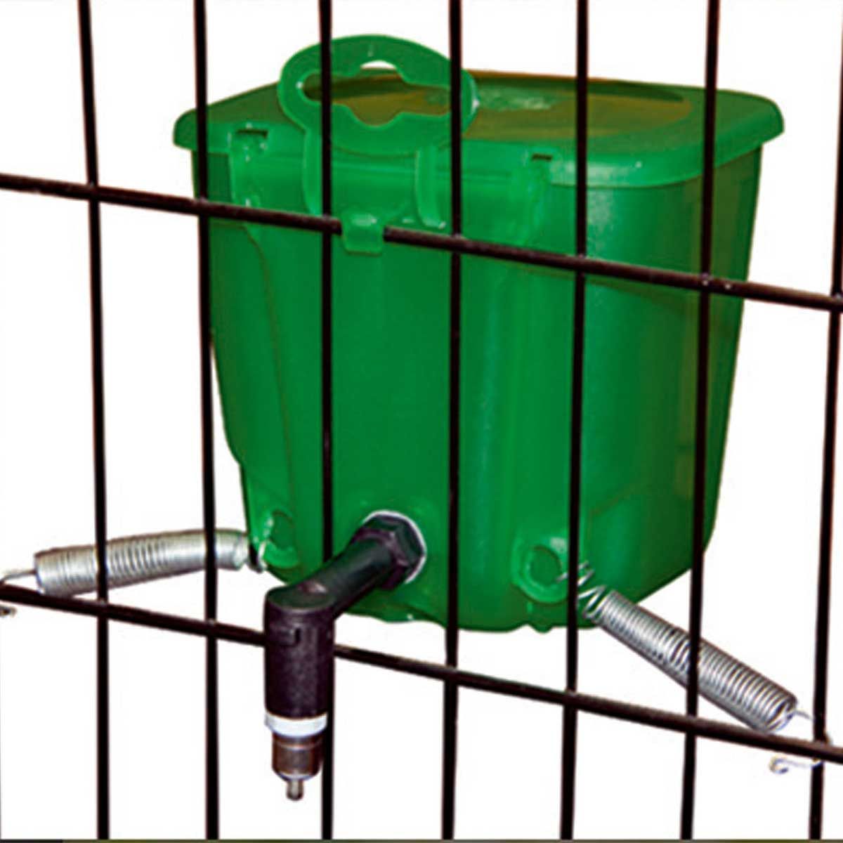 Az ivókészülék különösen stabil tartást kap a tetején lévő akasztószerkezetnek és az oldalsó két rugós rögzítésnek köszönhetően. A vizet felülről töltik fel.