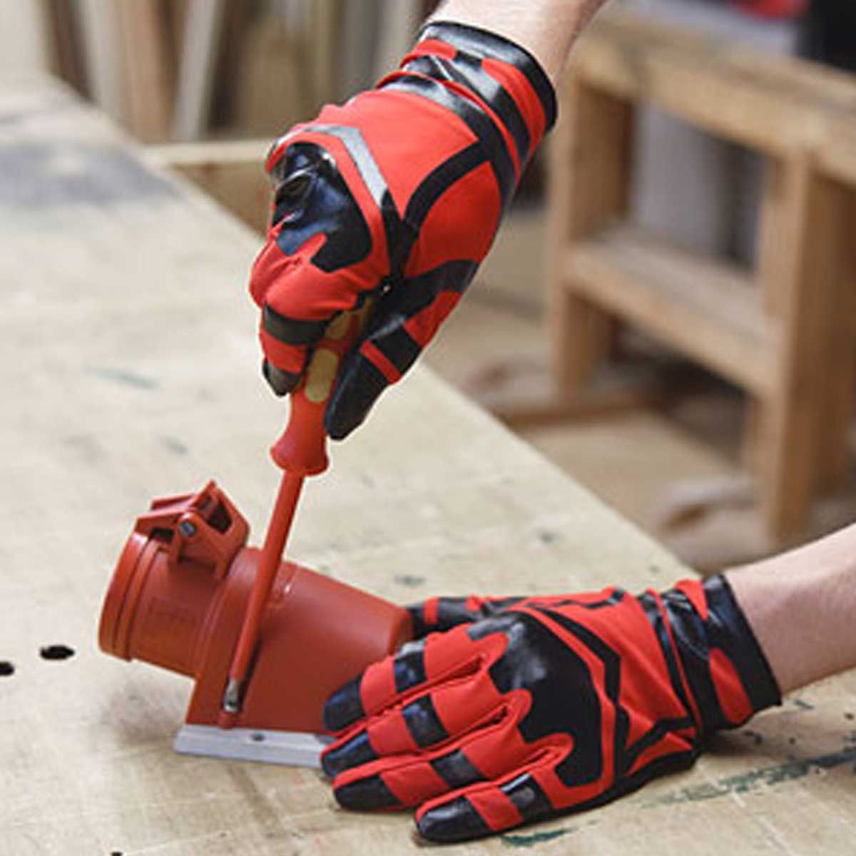 A kesztyű 0,5 mm-es, rendkívül vékony, mégis tartós szintetikus anyagból készült, és tökéletes feltételeket biztosít a kényes munkákhoz. A munkakesztyű teljes körbevonatú Lycra bevonattal rendelkezik a teljes mozgásszabadság és kényelem érdekében, így a kesztyű olyan érzés, mintha második bőr lenne. Az ujjakon és a tenyéren lévő szilikon méhsejtmátrix optimális fogást biztosít, a kézháton lévő, szabadon maradt területek pedig szilikonnal vannak megerősítve. Külön kiemelendőek az érintőképernyők használatához szükséges vezető ujjbegyek.