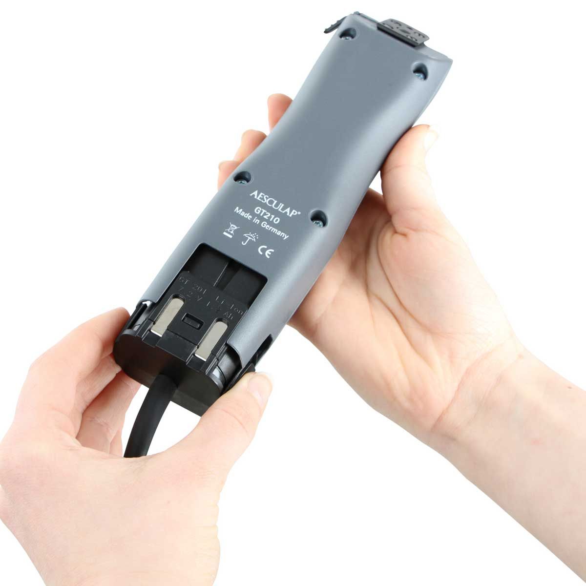 Az Aesculap kutya nyírógép szinte teljesen rezgésmentes működésű. Ez lehetővé teszi a hosszú ideig tartó, alacsony fáradtságot igénylő munkát. A vékony, ergonomikus kialakításnak köszönhetően a trimmer nagyon kényelmesen fekszik a kézben. A gép hátulján található kapcsoló kényelmes egykezes kezelést ígér. A GT207 adapterrel az akkumulátoros kutya nyírógép könnyen átalakítható vezetékes változattá. Egyszerűen csatlakoztassa az adaptert az akkumulátor helyett, és élvezze a megszakítás nélküli működést (az adapter nem tartozék).