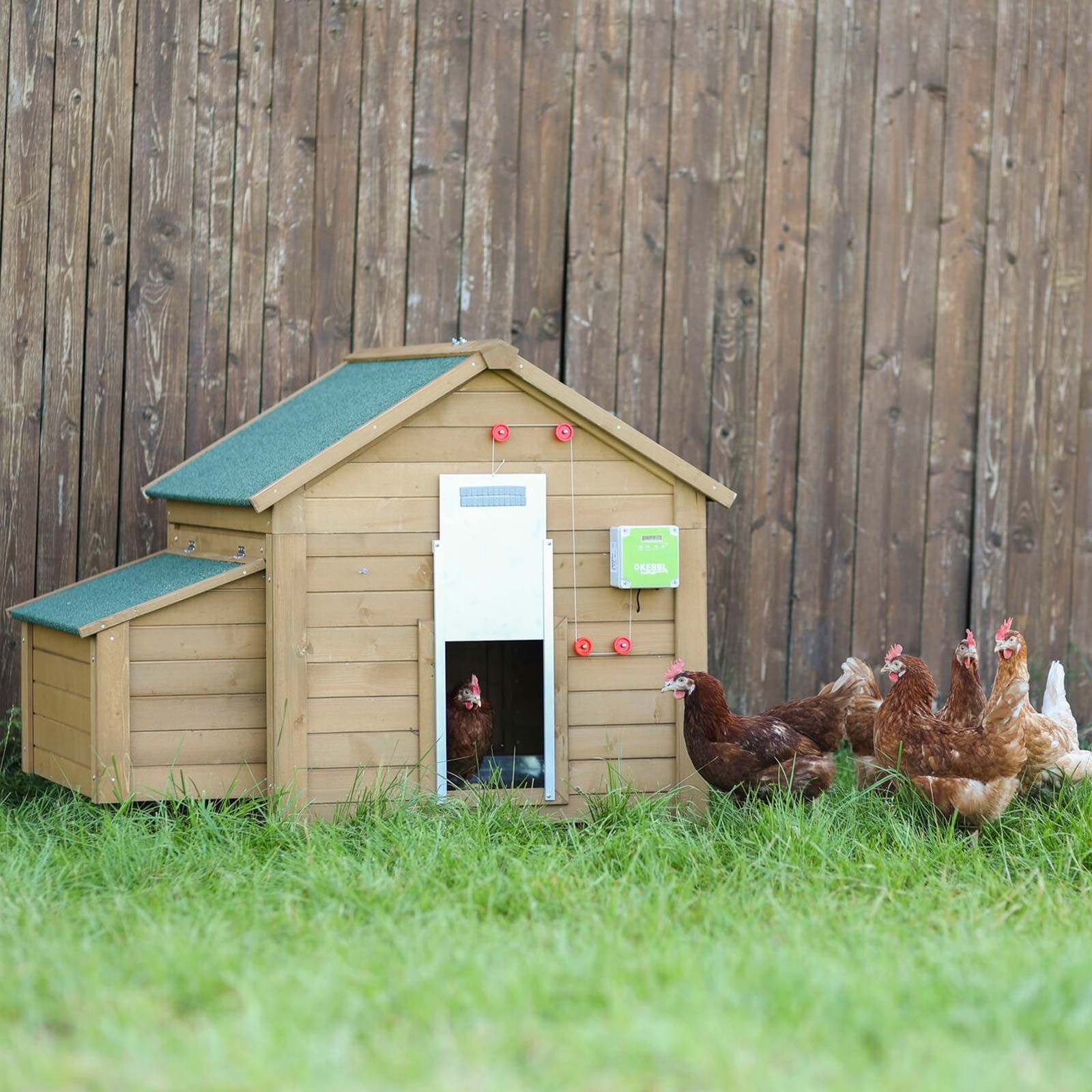 Az automata tyúkól ajtókhoz való tolóajtó az automata csirkeól ajtók tartozékaA tolóajtókat kifejezetten az automata tyúkól ajtókhoz tervezték, és két különböző méretben kaphatók. Az automata csirkeól ajtóval a baromfiólaknál automatikusan nyithatók és zárhatók a tolóajtók.
