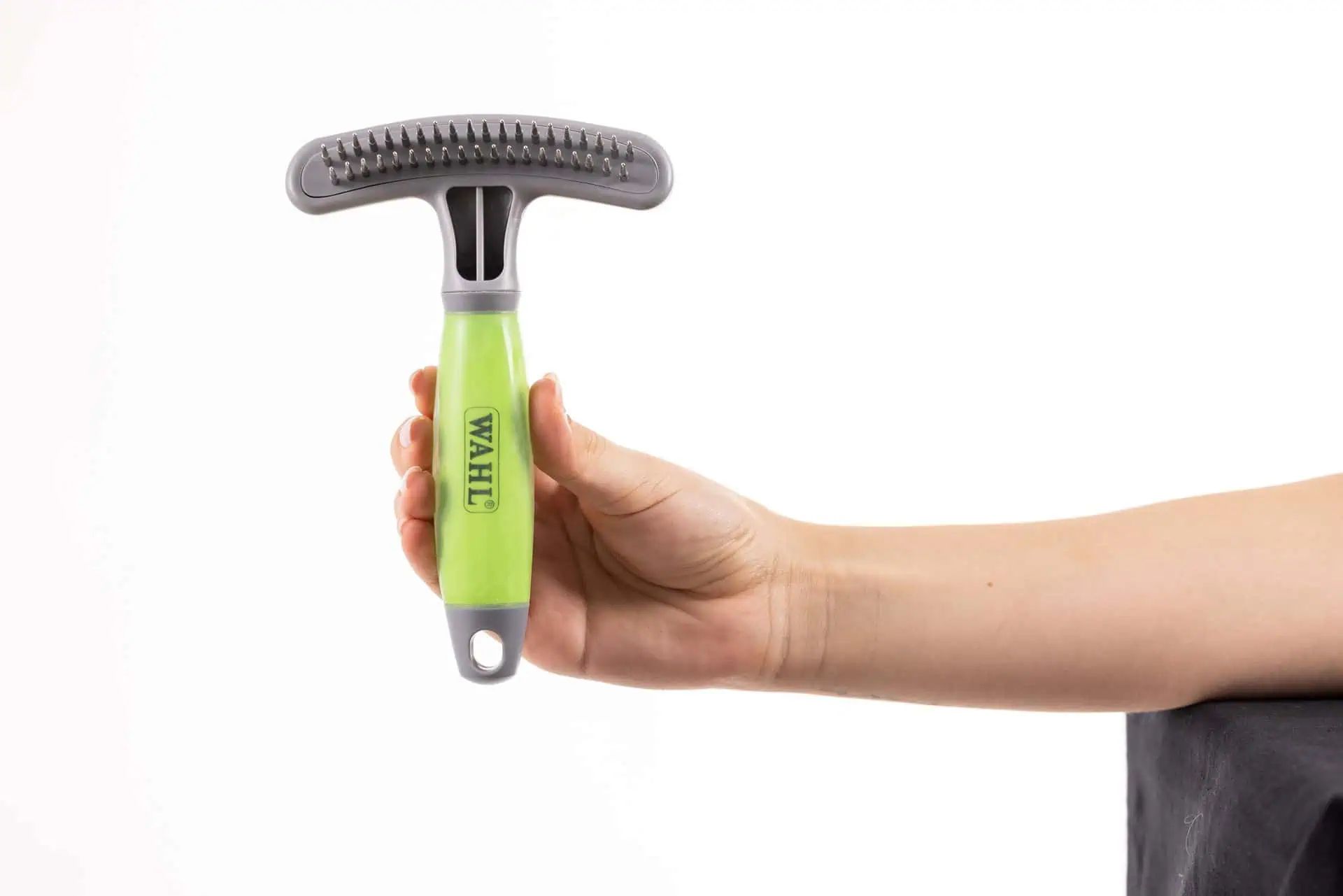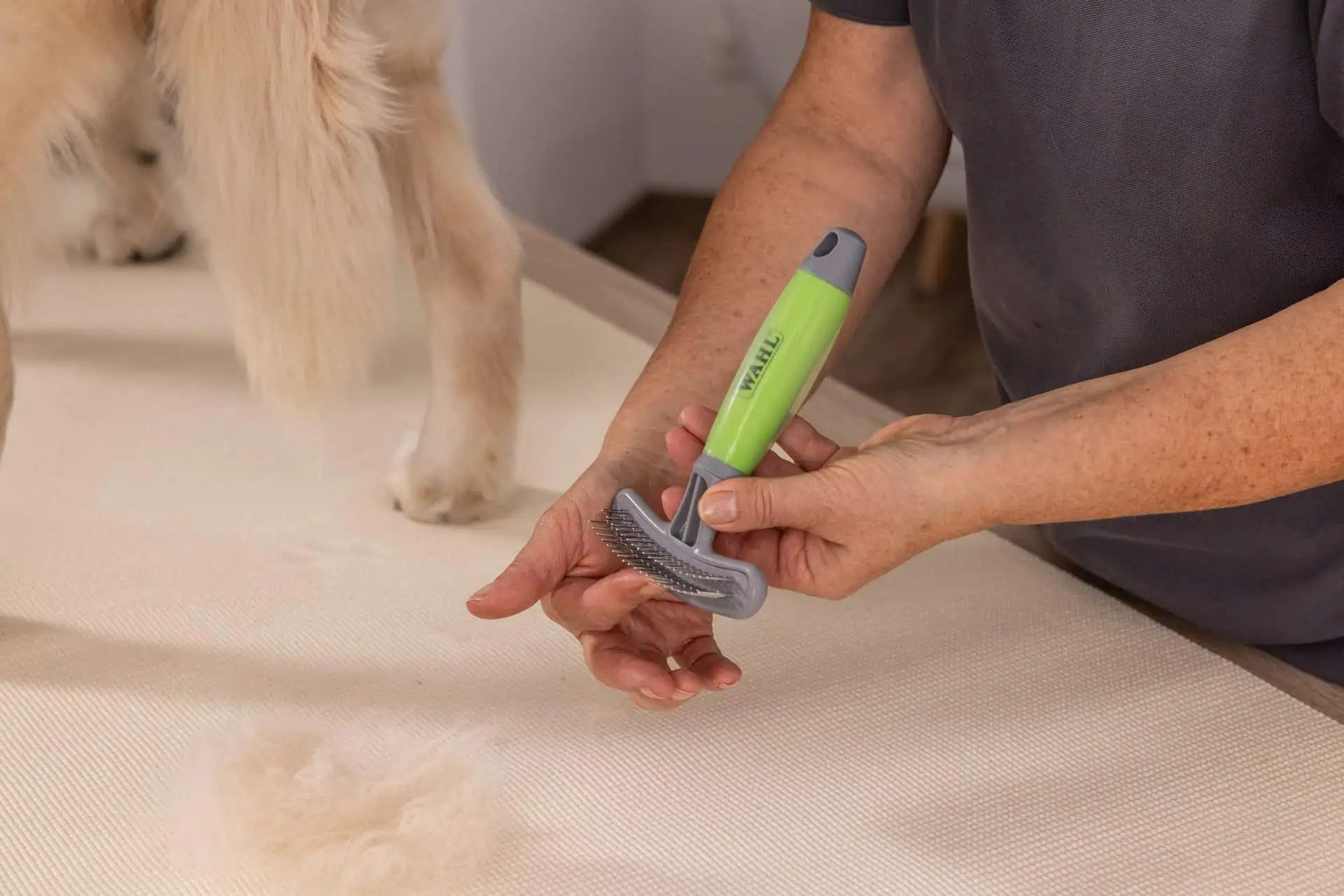 - Forgó fémcsapokkal az aljszőrzet hatékony kibontásához és eltávolításához