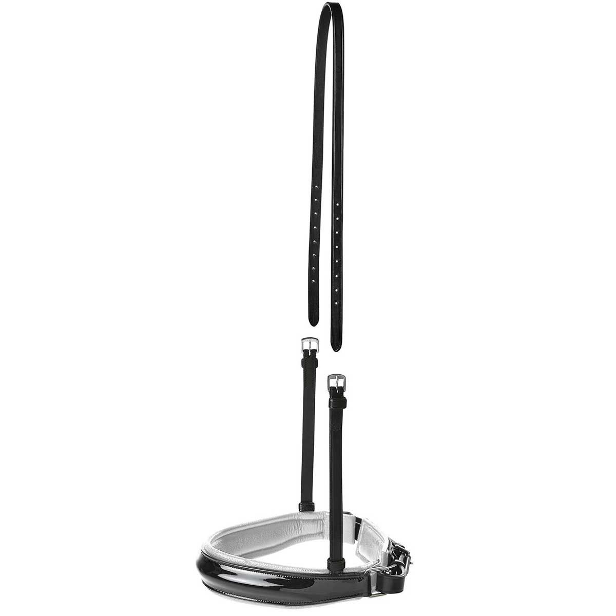 - Svéd orrpánt oldalirányban kúposodó és extra széles, puhán párnázott orrpánt lakkbőr felülettel, görgős csatokkal és integrált állkapocsbetéttel.