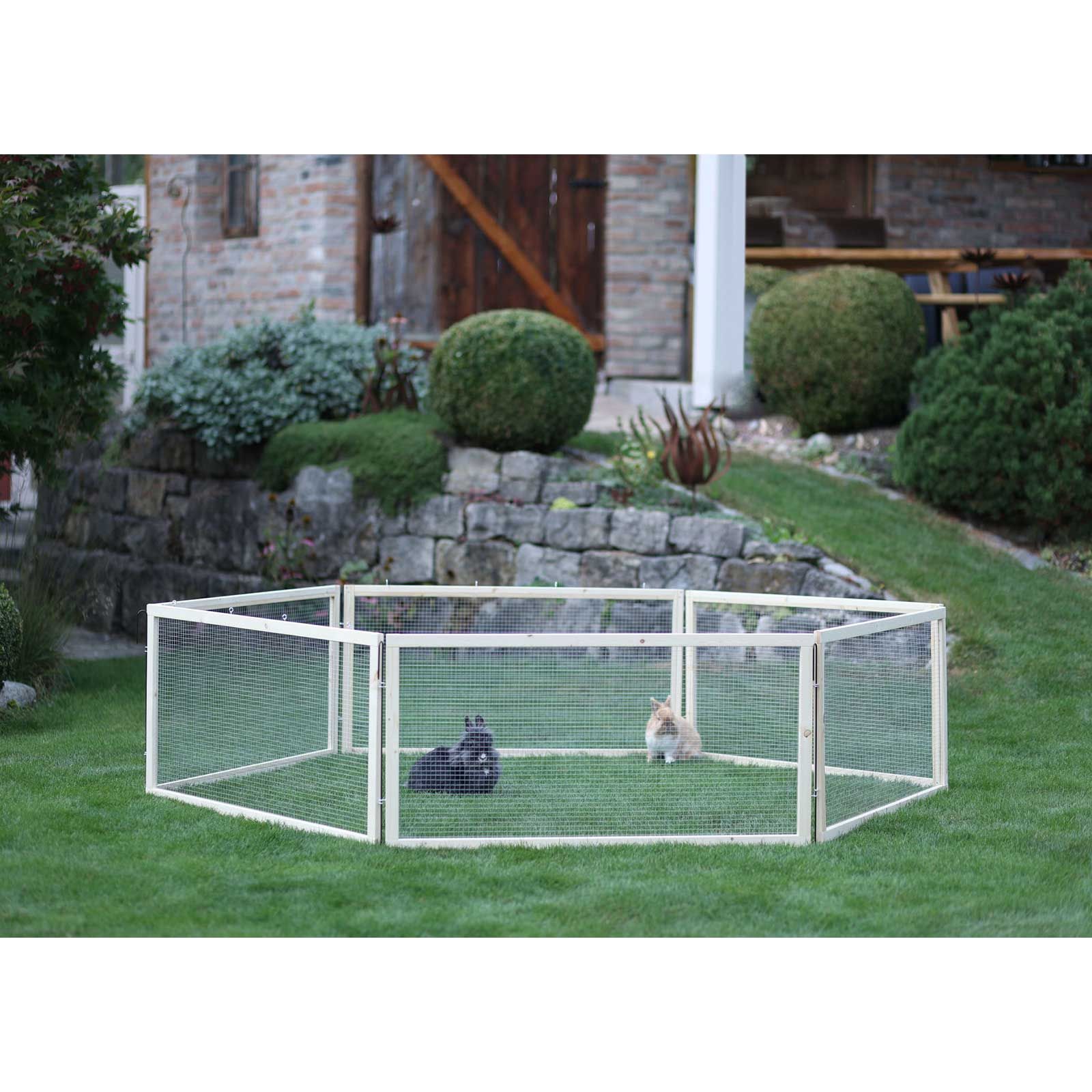 Nyári frissesség a kertben! Ebben a kültéri ketrecben a rágcsálók friss zöld növényeket rágcsálhatnak, ugrálhatnak. Könnyen mozgatható! Néhány egyszerű mozdulattal a rágcsálóparadicsom mérete 1,44 m²-ről 2,88 m²-re duplázódik.