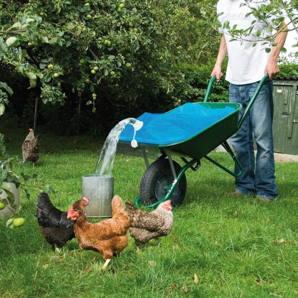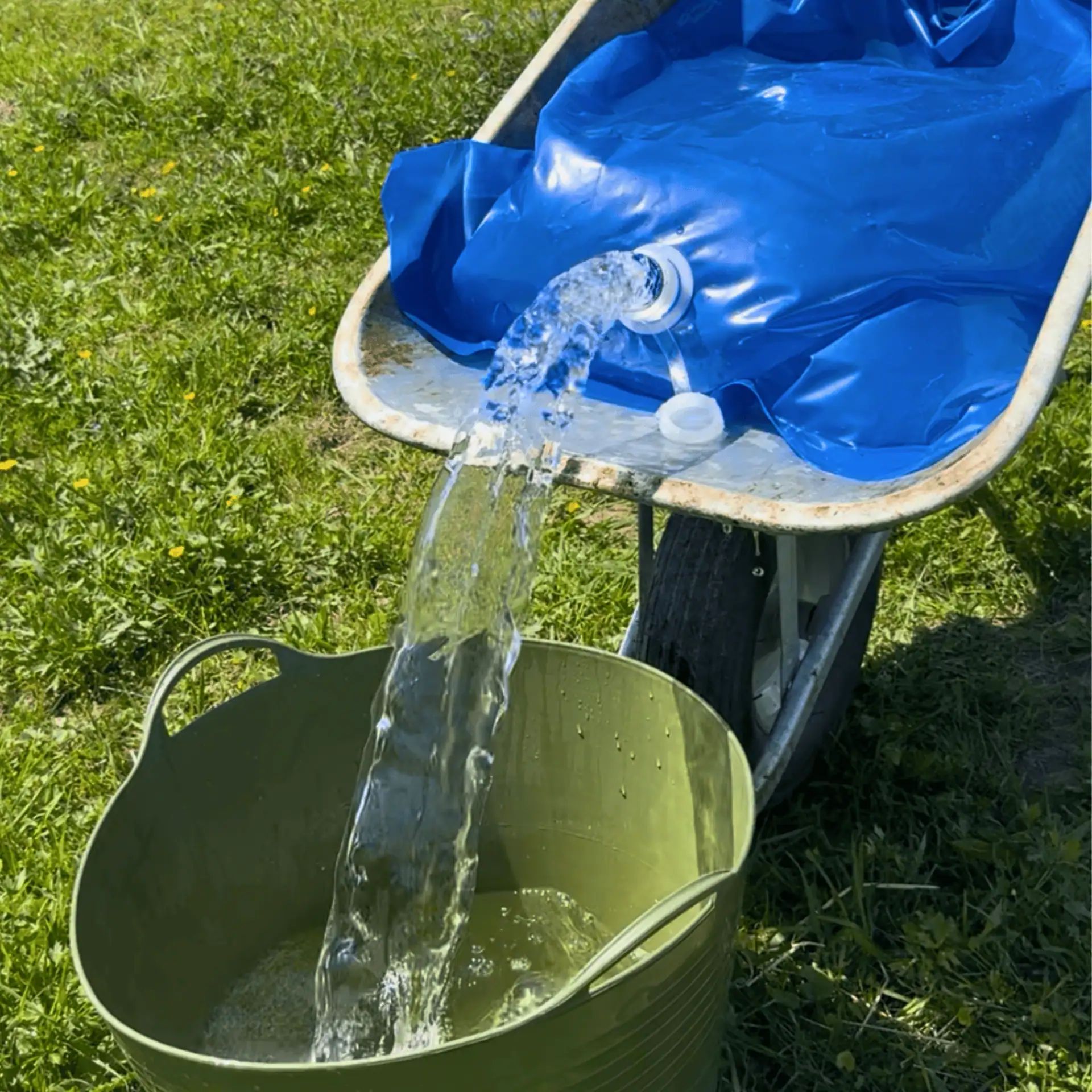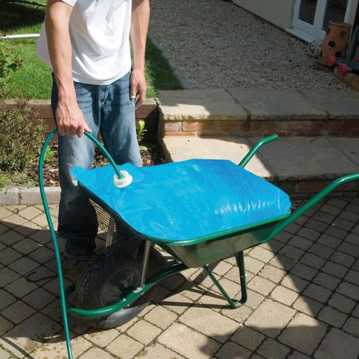 Egyszerűen helyezze a szőnyeget a talicskába, töltse meg vízzel, szállítsa a kívánt helyre, és ott öntse ki, vagy töltsön meg egy vödröt.