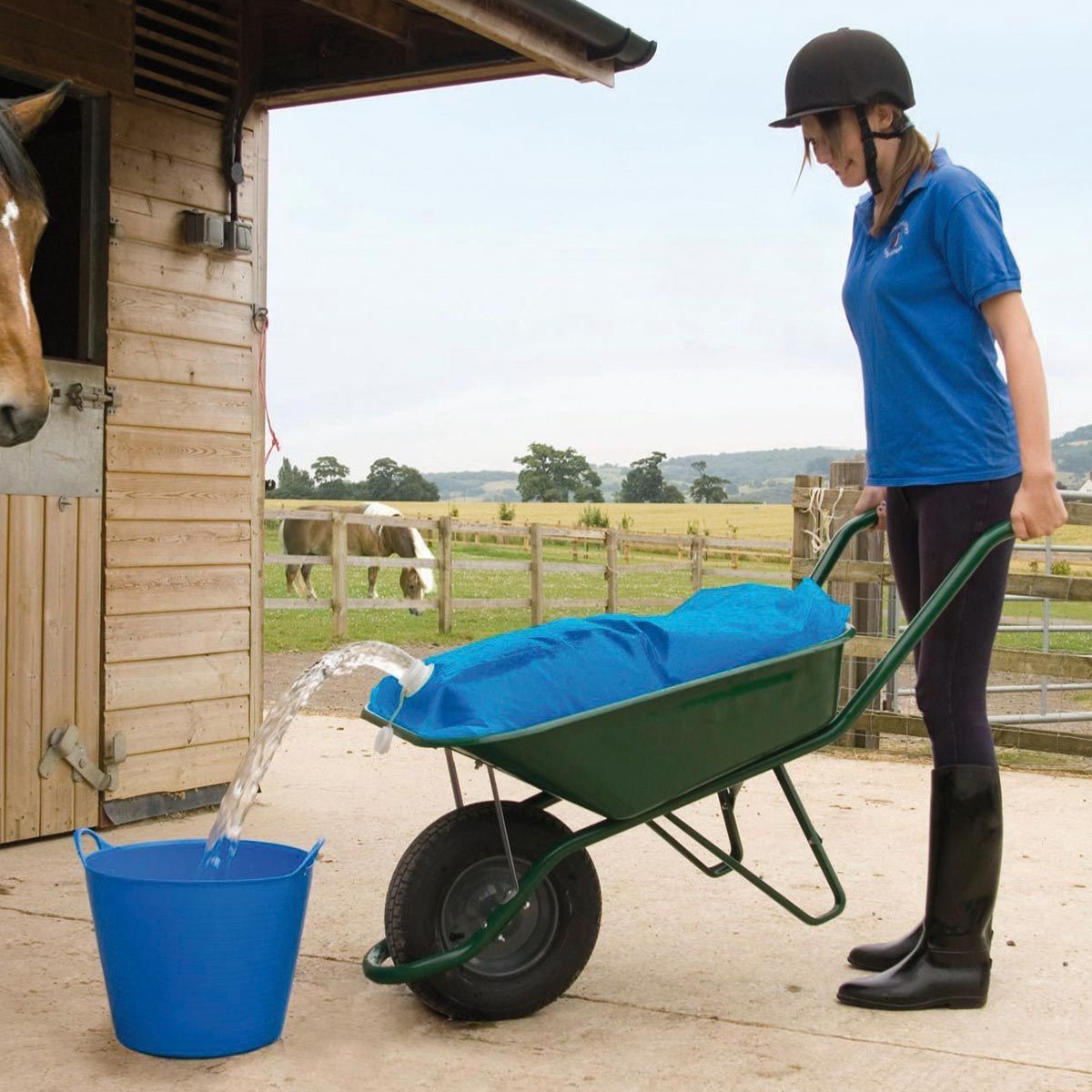 A H2gObag víztartály a víz tárolására és szállítására egyszerű, praktikus és a flexibel használható. A H2gObag egy nagyméretű víztasak, amely egy talicskába illeszthető, és akár 80 liter víz szállítására is alkalmas. A víztartály ideális minden olyan helyen, ahol a víztömlő nem elegendő, például az istállóban, a kertben, a mezőgazdaságban, az építkezésen stb.
