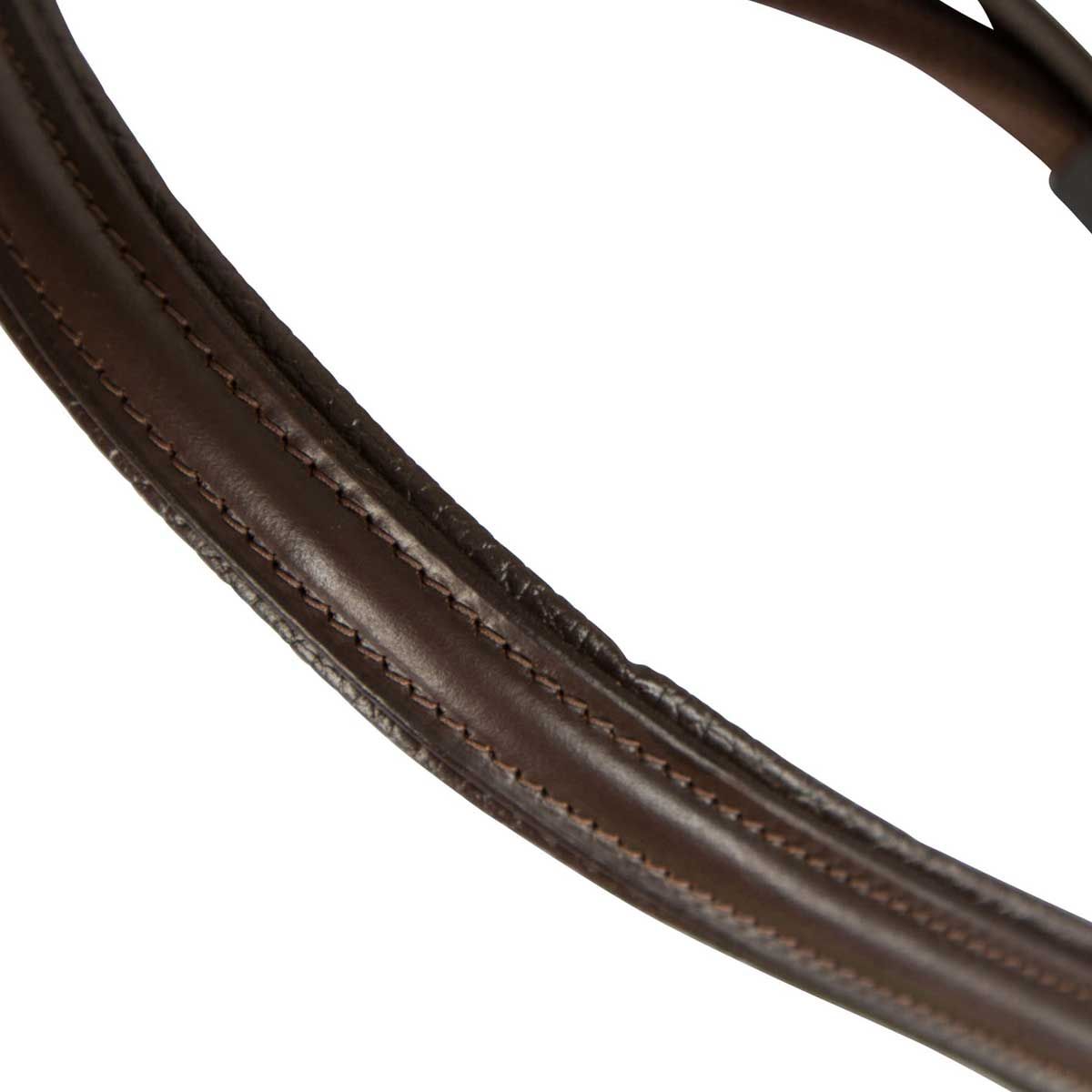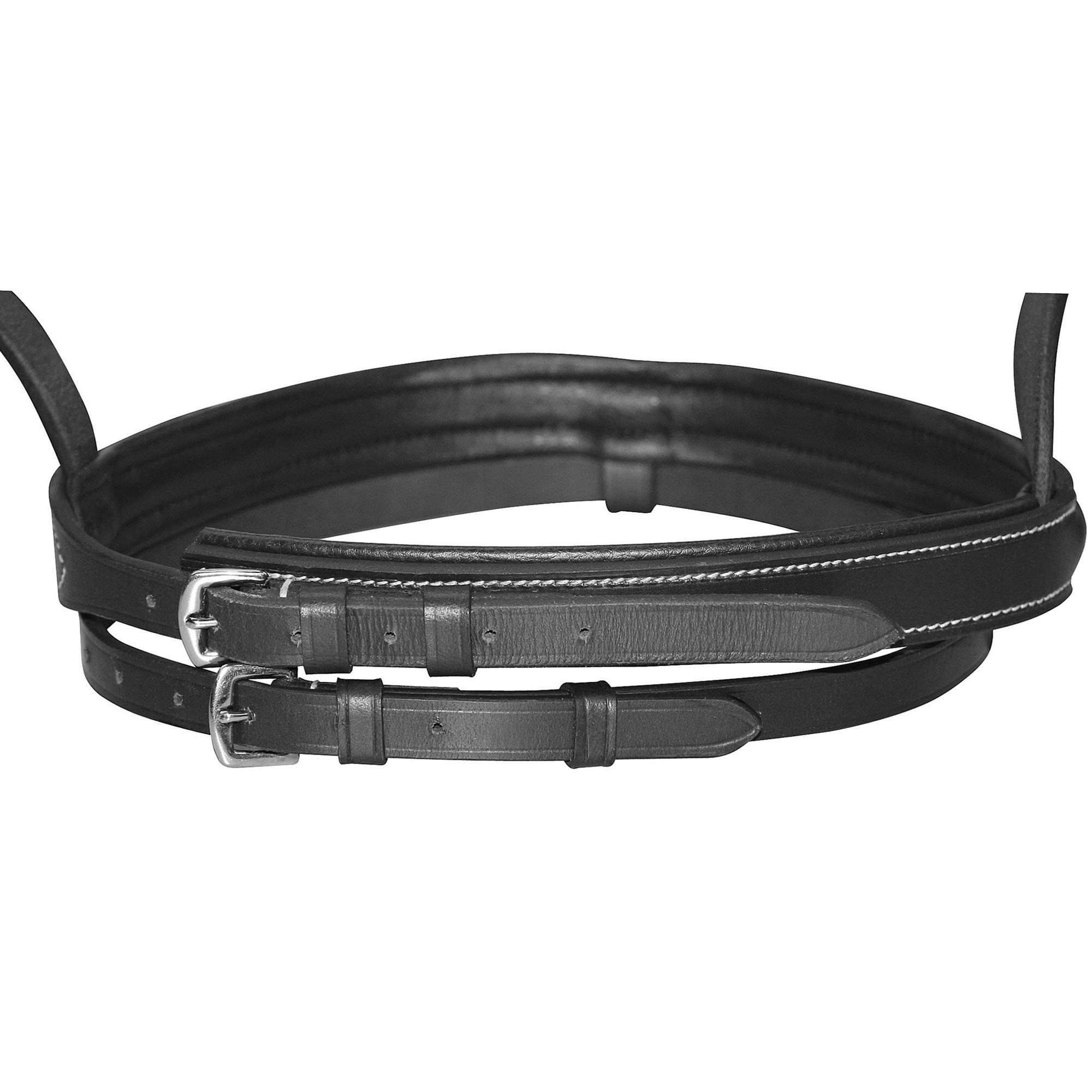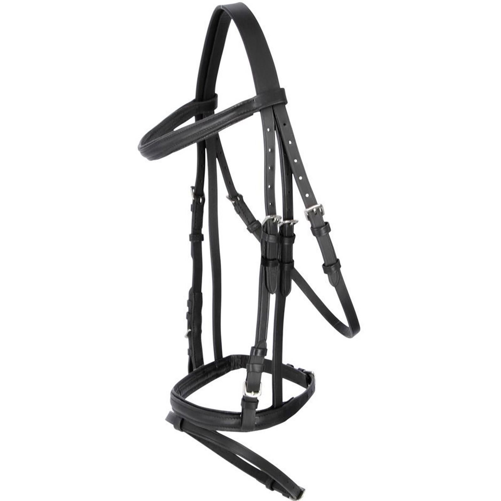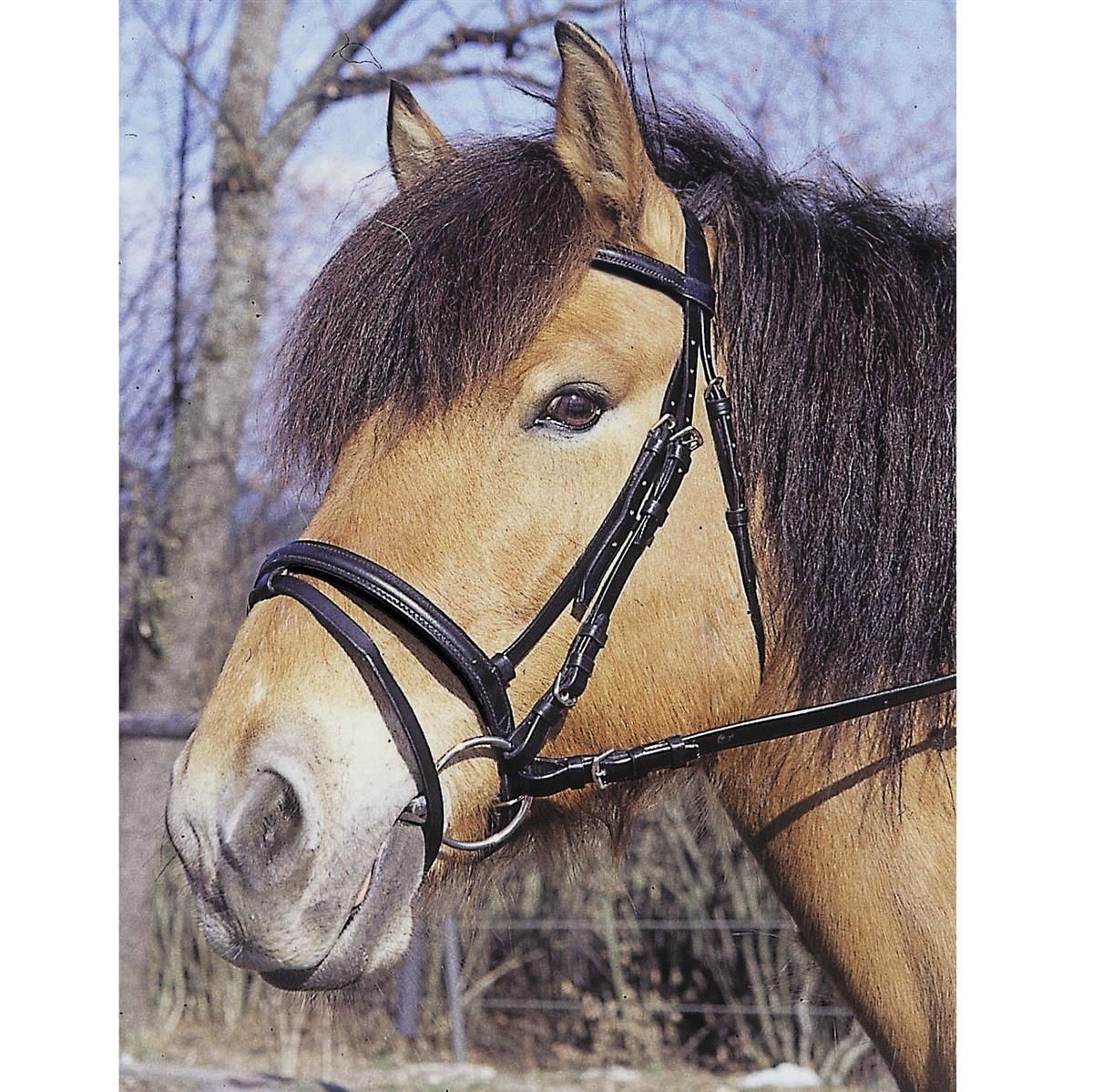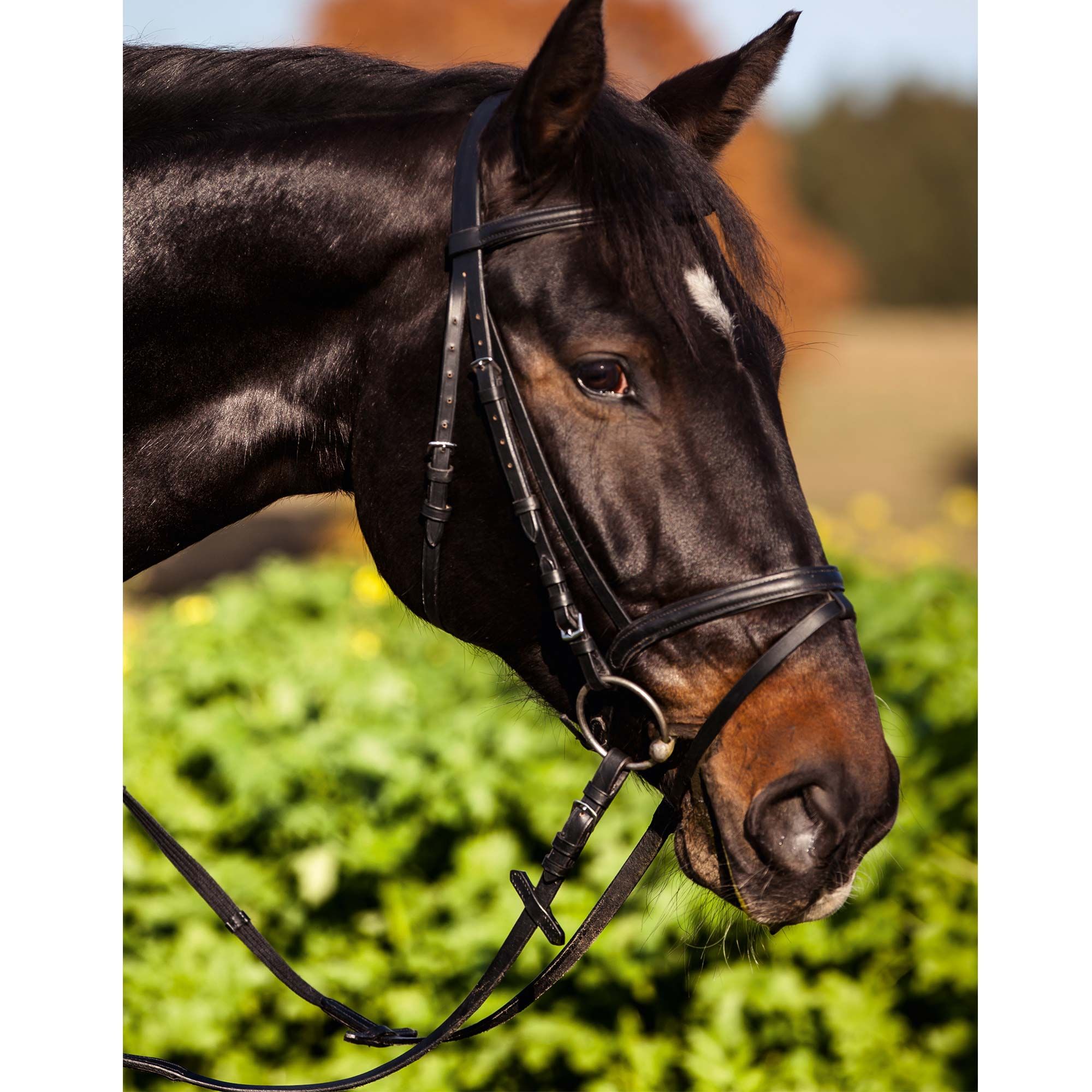 Egy angol kombinált orrszíjat kap, záró pánttal, jó minőségű, standard minőségű. A kantár kézzel varrott és állítható.