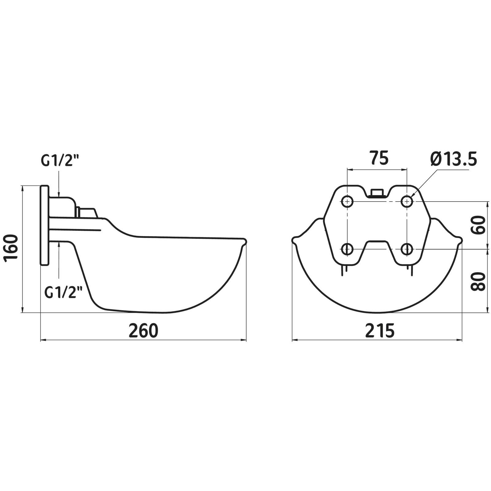 Az 1,7 liter űrtartalmúönitató medence istállóhoz és legelőhöz ideális a lovak és szarvasmarhák vízhez jutásának biztosításához. A kiváló minőségű zománcozott felület és a kerek medenceforma kombinációjának köszönhetően az itató könnyen tisztítható. A tehén- és lóitató alkalmas falra és csőbe szerelésre, és két 1/2"-os csatlakozón keresztül felülről vagy alulról is lehet vízzel ellátni. Az áramlási sebesség 8 liter/perc 3 bar kimeneti nyomáson.