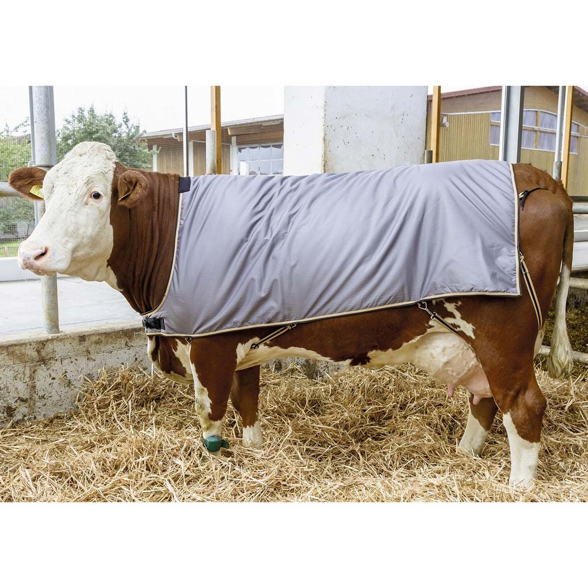 A tehéntakaró Kerblnagymarhák számára optimális meleget biztosít a beteg és mozgásképtelen tehenek számára, a puha, flexiállítható lábszárpántok elöl és hátul pedig garantálják a jó illeszkedést. A szakadásálló 600 denier poliészter ripstopból készült külső anyag teszi a tehéntakarót robosztussá és tartóssá. Mivel a Kerbl tehéntakaró légáteresztő tulajdonságokkal rendelkezik, megakadályozza a túlzott izzadást (3000 g/m²/24 óra). A takarót a kiállításokon is használják, hogy megvédje a tehenet a szennyeződésektől és a huzattól. A tehéntakaró 30 °C-on mosható a mosógépben.