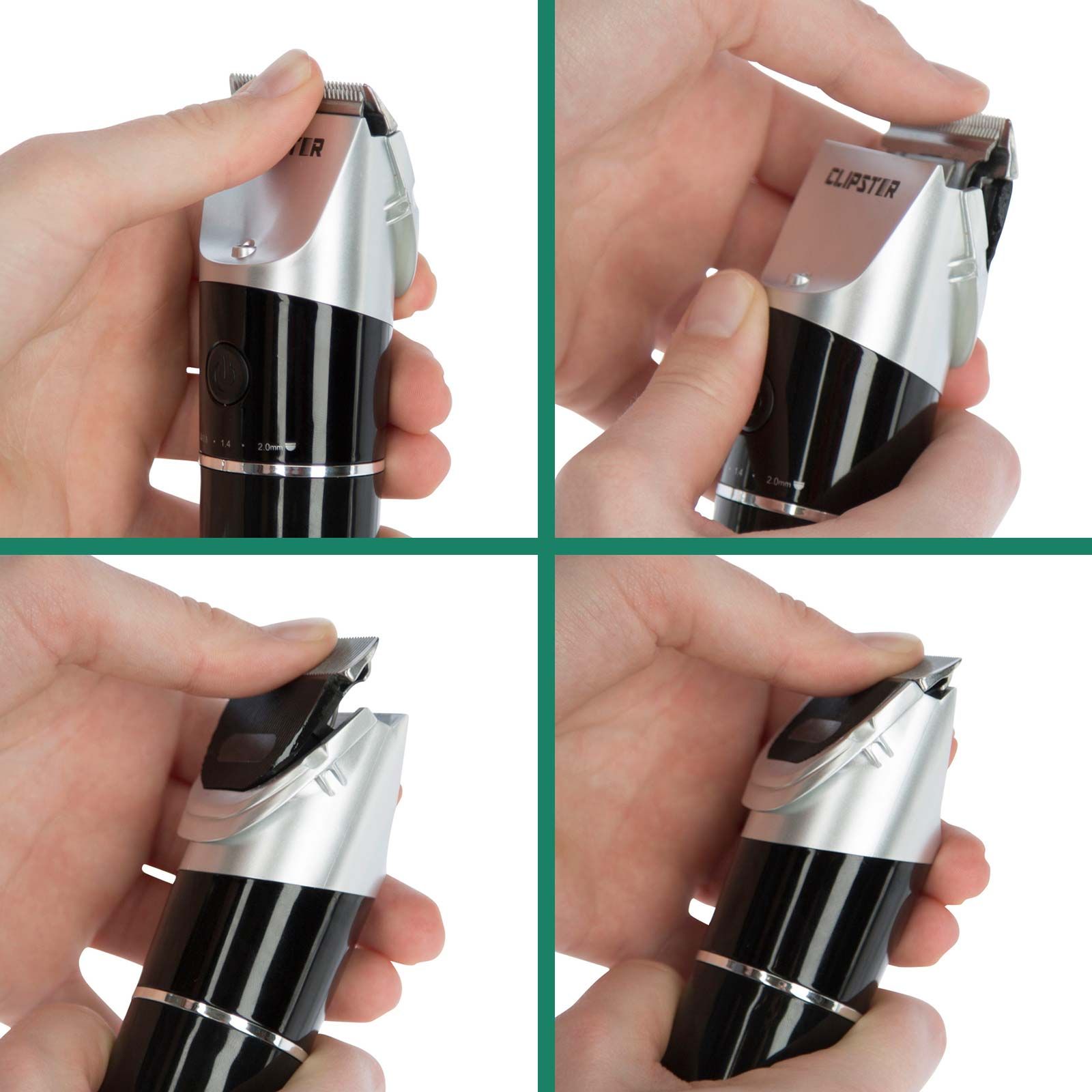 A DeloX állatnyírógép hálózati kábellel vagy anélkül is használható. Teljes feltöltéssel a nyírógép akár 300 percig is képes megszakítás nélkül nyírni. Az akkumulátor teljes feltöltése szintén 300 percig tart. A mindössze 242 grammos Clipster DeloX igazi könnyűsúlyú, ami nagyon megkönnyíti a hosszabb ideig tartó nyírást. A mellékelt nyírófej pontosan vág, és a házba integrált 5 fokozatú vágási hosszbeállítással nagyon egyszerűen beállítható 0,8-2,0 mm között. A beépített LED-fény tökéletes láthatóságot biztosít munka közben, és különösen a nehezen hozzáférhető helyeken nagy segítség. A kisállat nyírógépen található LED-kijelző kényelmesen tájékoztatja Önt a töltési állapotról és az akkumulátor kapacitásáról. A kijelző azt is mutatja, hogy mikor kell a nyírófejet olajozni, vagy mikor van szükség a tisztításra.