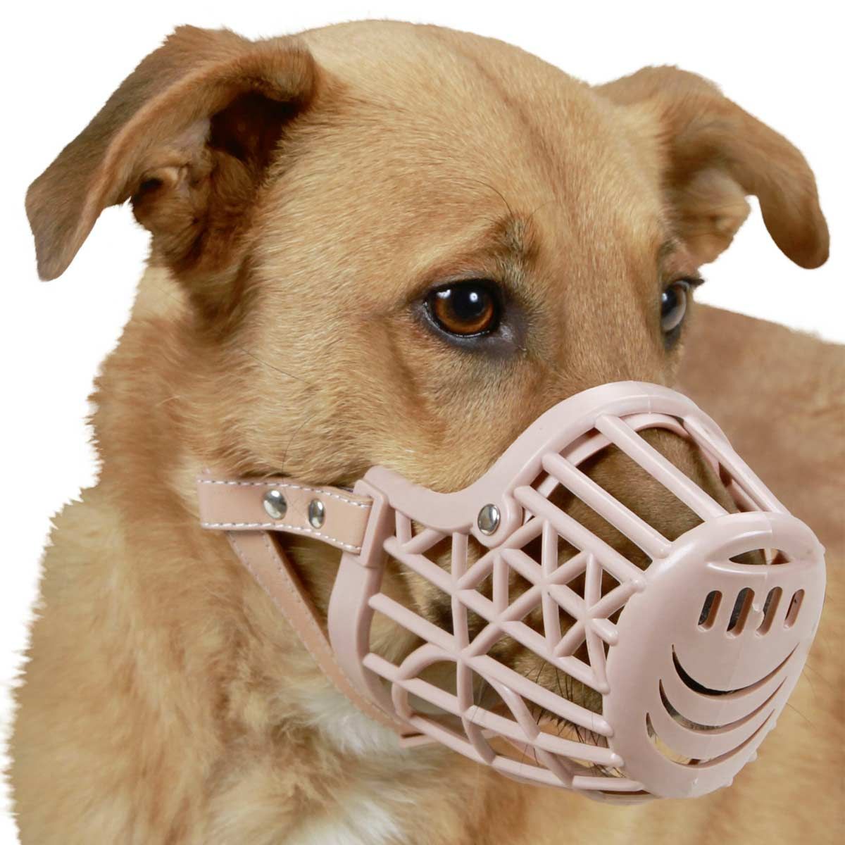 A barna műanyagból készült kutyapofa szegecselt és bőrpántokkal rendelkezik a kényelmes illeszkedés érdekében A szájkosár többféle méretben kapható:Méret: (a pofa kerülete/kosármélysége)