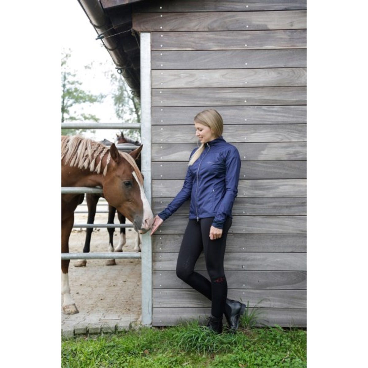 A sportos Covalliero női lovagló kabát vagy lovas dzseki számos praktikus funkcióval ideális funkcionális széldzseki a szabadtéri sporttevékenységekhez, lóháton vagy egyszerűen csak gyalog. Az anyagkombináció egyrészt szél- és időjárásvédelmet, másrészt tökéletes mozgásszabadságot és légáteresztő képességet biztosít. A lovaglódzseki anyaga 3000 mm-es vízoszlopig erősen víztaszító. A fényvisszaverő cipzárszalag nemcsak optimális láthatóságot biztosít, hanem szuper elegánsan is néz ki. A hüvelykujjkivágással ellátott, meghosszabbított ujjbegy további védelmet nyújt az időjárás ellen.