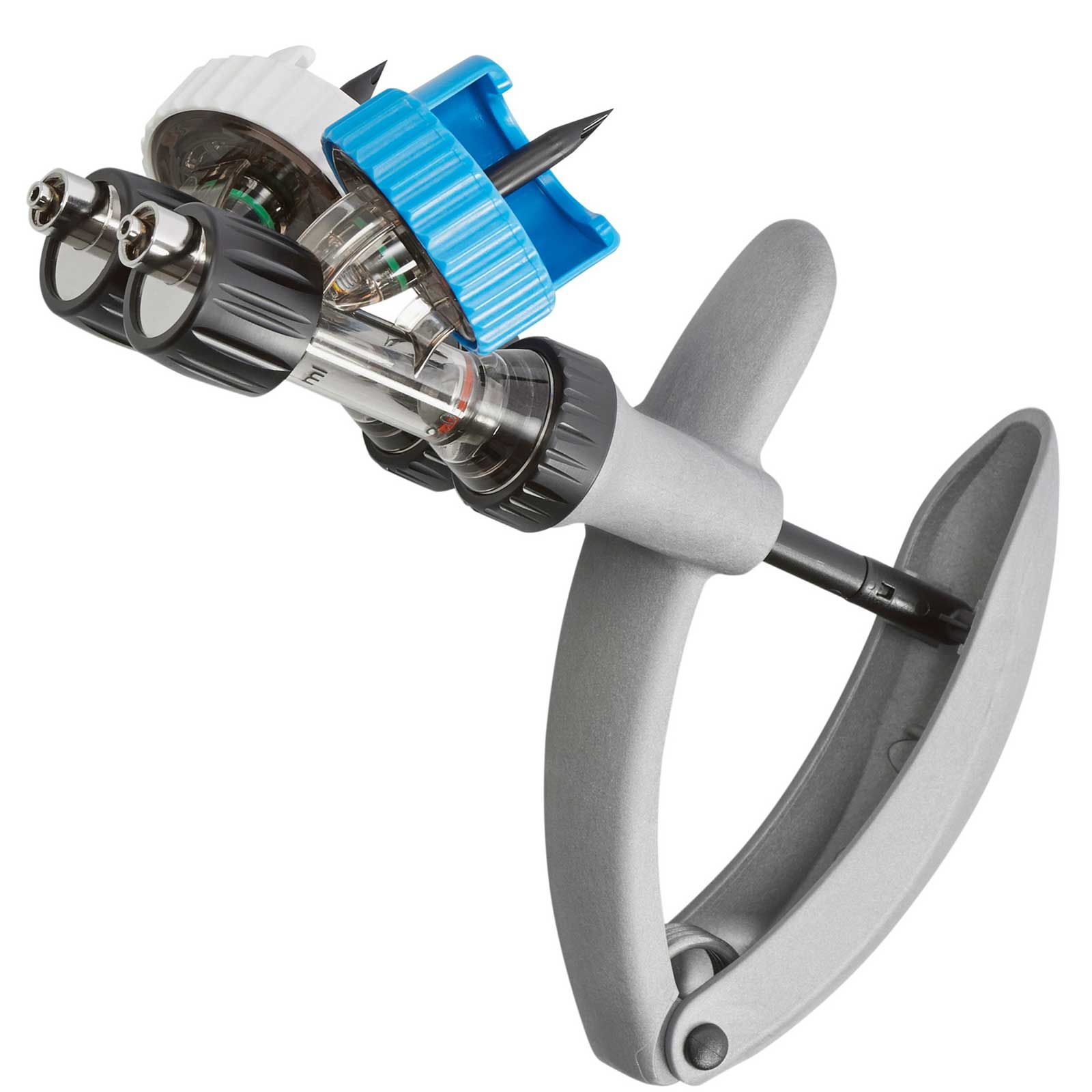 HSW ECO-MATIC Twin tartozékok hatszögletű elülső rész Luer-Lock Prémium műanyag fecskendő két különálló hengerrel, nagy szilárdságú műanyagból és kopásmentes fém tűcsúccsal. két gyógyszer/oltás egyidejű beadása keverés nélkül lehetséges fix adagolás hengerenként (különböző adagolási kombinációk állnak rendelkezésre) ergonomikus kialakítás és könnyű kezelhetőség, alacsony súly állítható távolság a kanülök között hengerállás állítható Palack- és/vagy csőcsatlakozás lehetséges