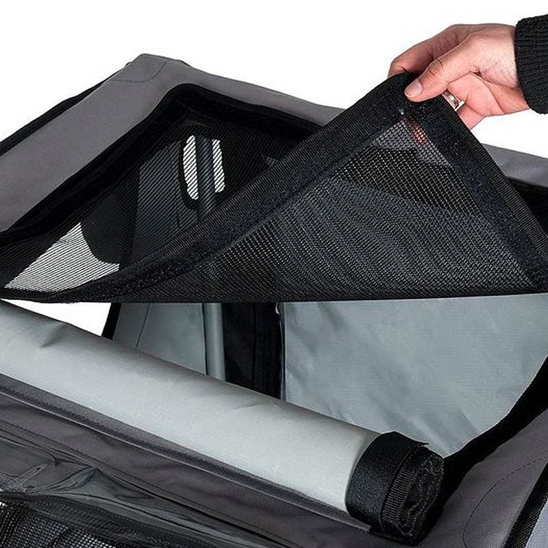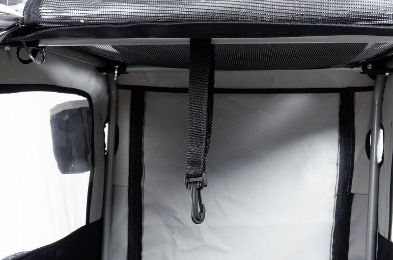 Kerékpár utánfutó eredeti TEFLON® felszereléssel. Ez azt jelenti, hogy állata teljesen védett a széltől és az időjárástól. Sok praktikus részlettel, mint például reflektorok, szellőzőrácsok, zászlók, .... Kb. 20 kg-ot bír.
