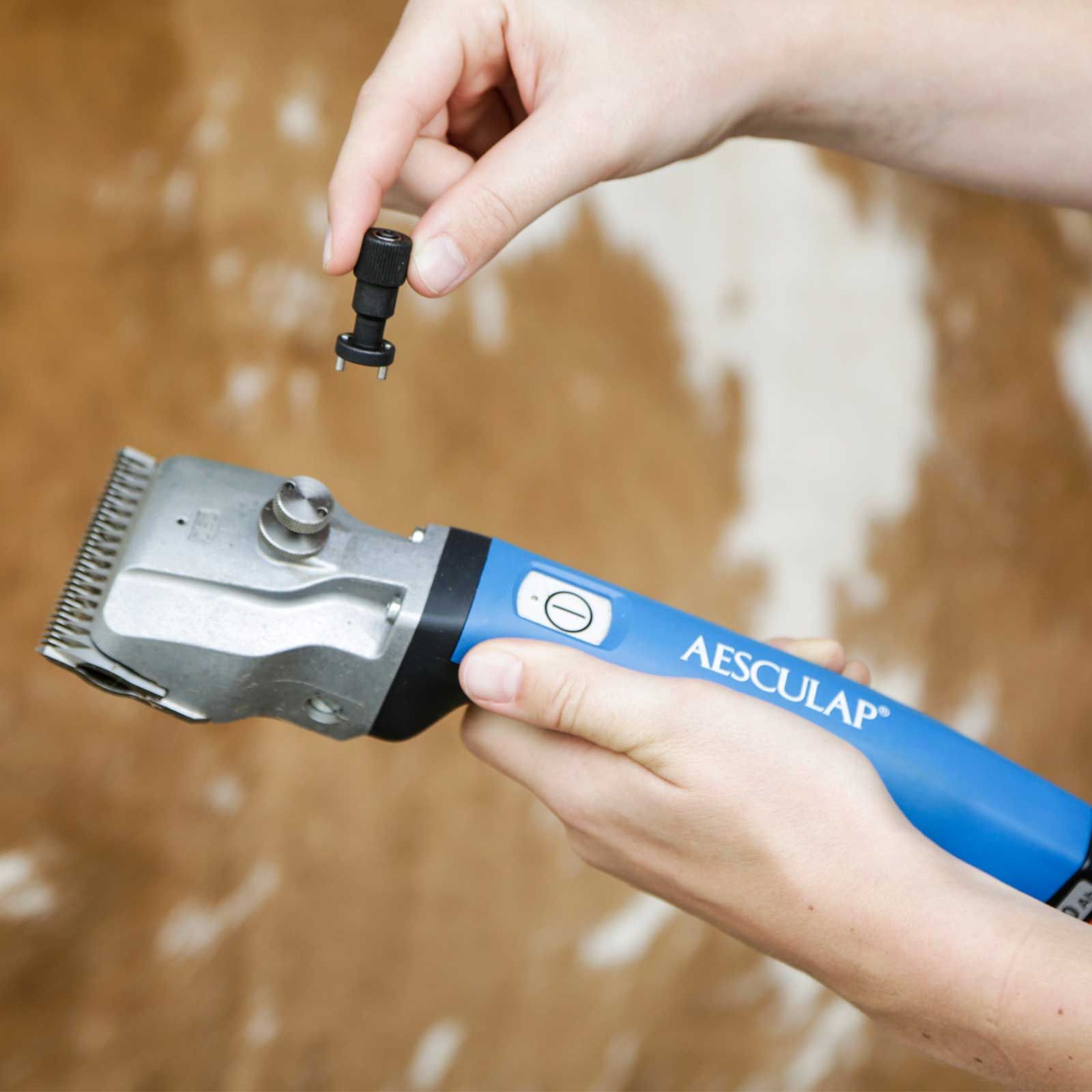 Ezzel az innovatív "nyomatékkulccsal" gyerekjáték az Aesculap szarvasmarha-/lónyírógépek nyírólemezének nyomásának beállítása.