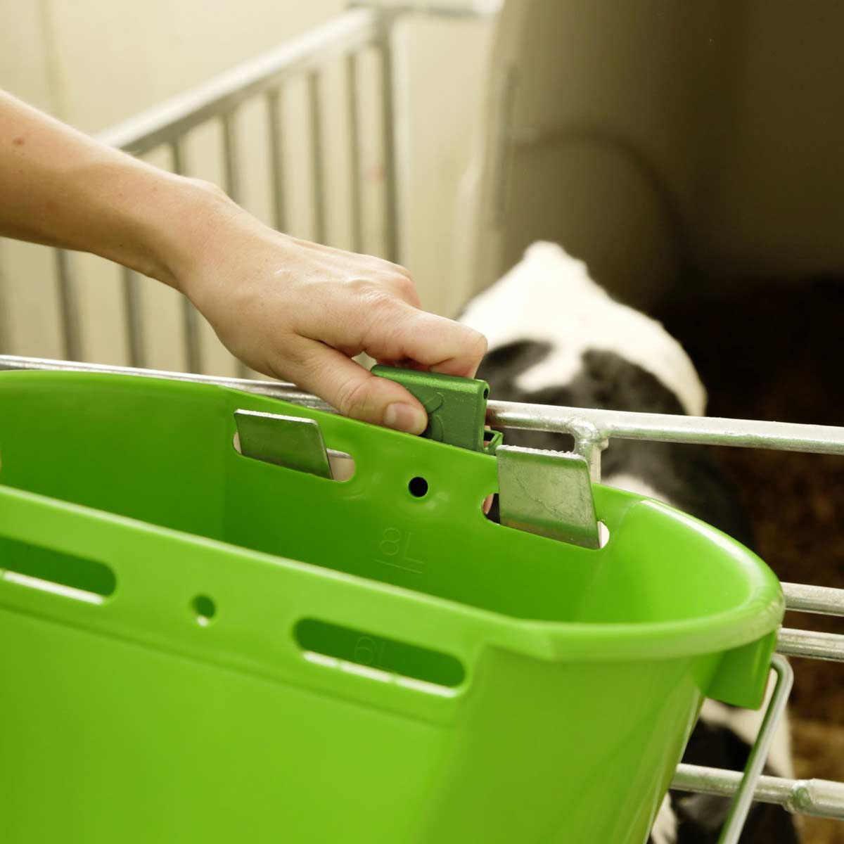 - Megakadályozza, hogy a borjak kidobják az itatóvödröket