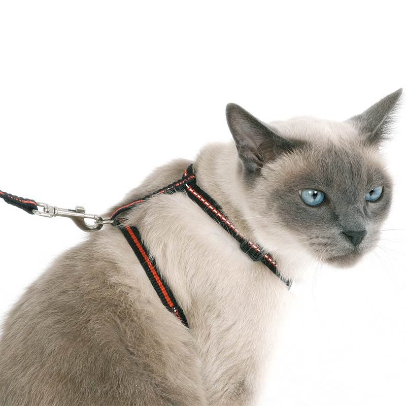 Ez a csinos macskakészlet hámból, nyakörvből és pórázból áll. A hám és a nyakörv fokozatmentesen állítható, ezért minden macskához egyedileg illeszthető. Pattintóval zárhatók.