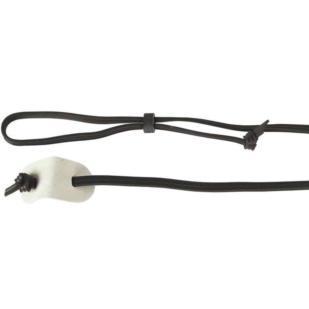 A felső gumi egy fém felső konzol segítségével kapcsolódik a gumikötélhez. A gumikábel túlterhelés elleni védelemként szolgál, és túlzott feszítés esetén leválik a felső konzolról. A gumikötélhez csatlakoztatott perlonzsinór lehetővé teszi, hogy a tehén farát szükség esetén (például fejés közben) magasabbra lehessen akasztani. A tehénfarok gyorsrögzítője az alsó végén található. Egy zárócsapból és egy alsó gumiból áll.
