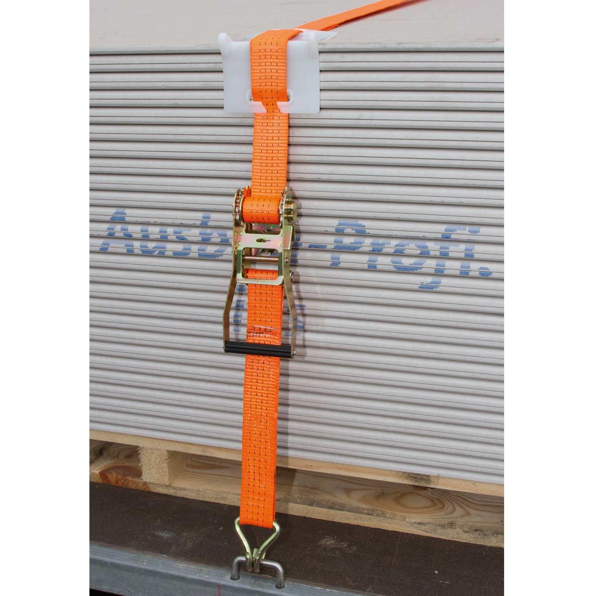 Ez a kétrészes racsnis rögzítőheveder biztosítja a megengedett szakítóerőt.