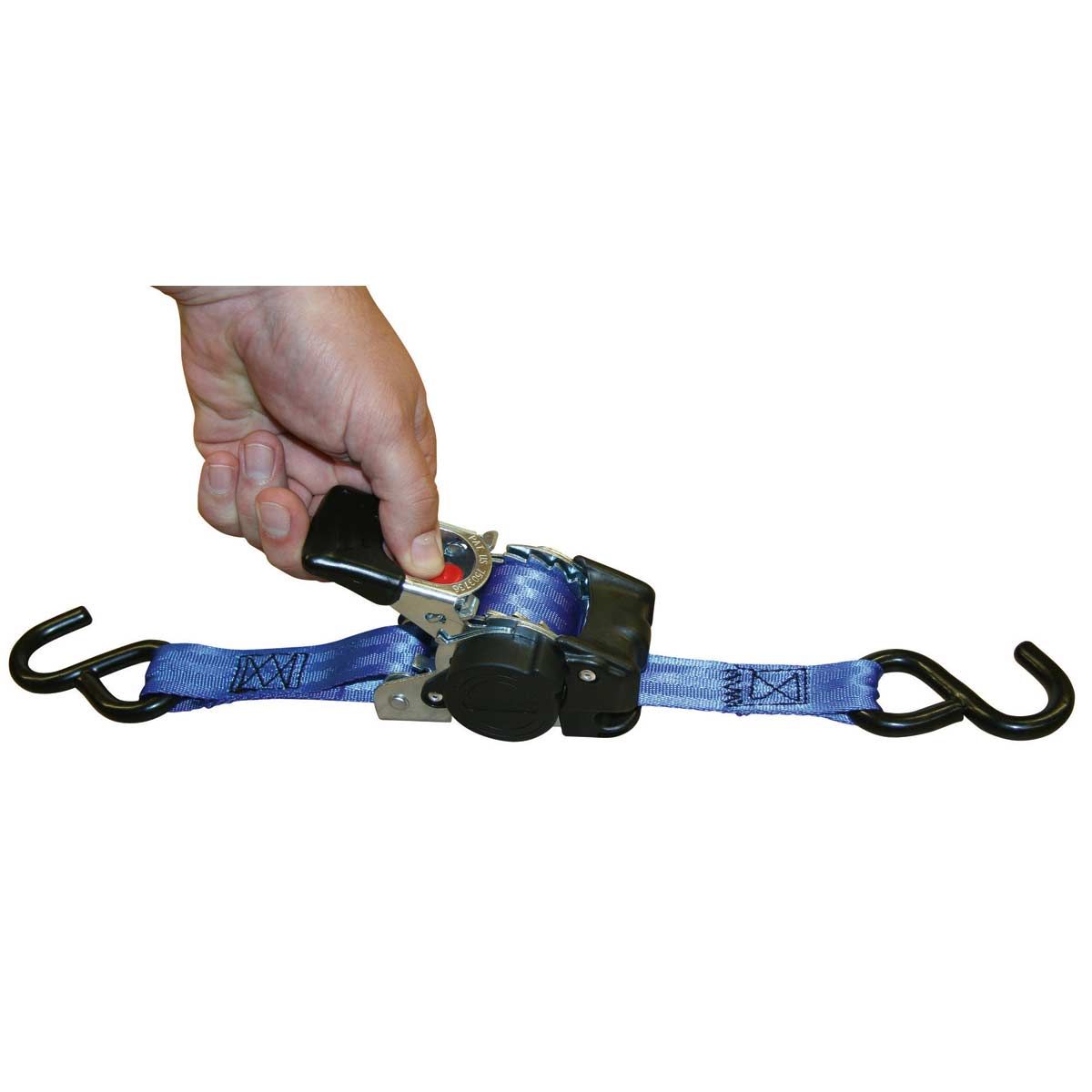 Az automata rögzítőheveder behúzható funkcióval 3 m x 25 mm-es S-kampóval könnyen és gyorsan rögzíti a rakományt. A 3 m hosszú heveder lépésről lépésre kihúzható és behúzható. A heveder visszahúzása nagyon egyszerű egy gombnyomással. Kiváló minőségű heveder megfizethető áron.