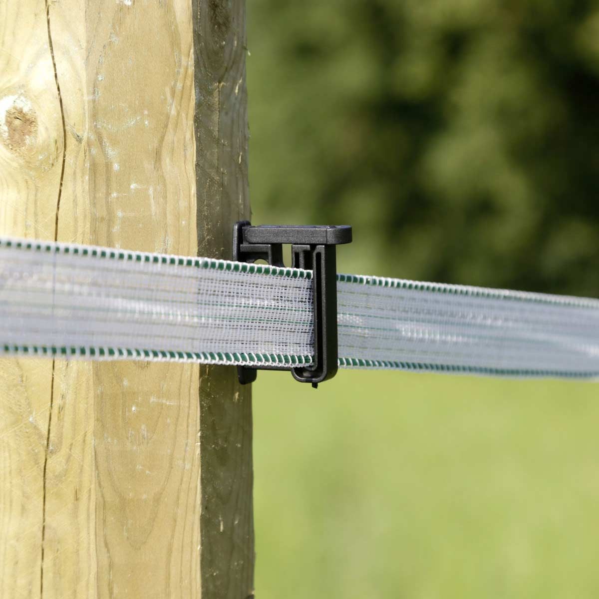 A AKO klipszszigetelő Maxi Tape a 2 bepattintási pontnak köszönhetően továbbfejlesztett klipszmechanizmussal ideálisan alkalmas legelőkerítésekhez 40 mm széles szalagokkal és 6 mm széles elektromos kábelekkel.