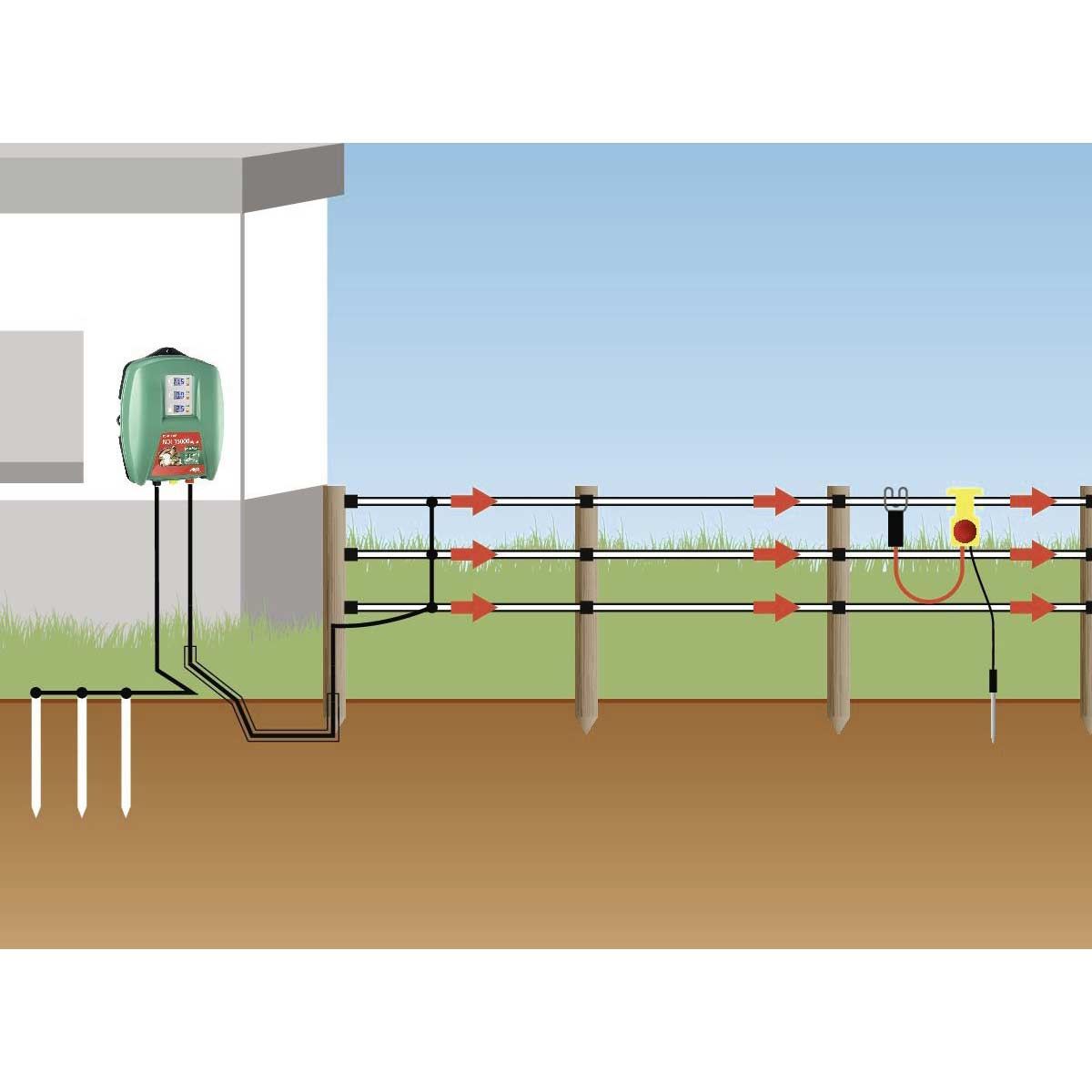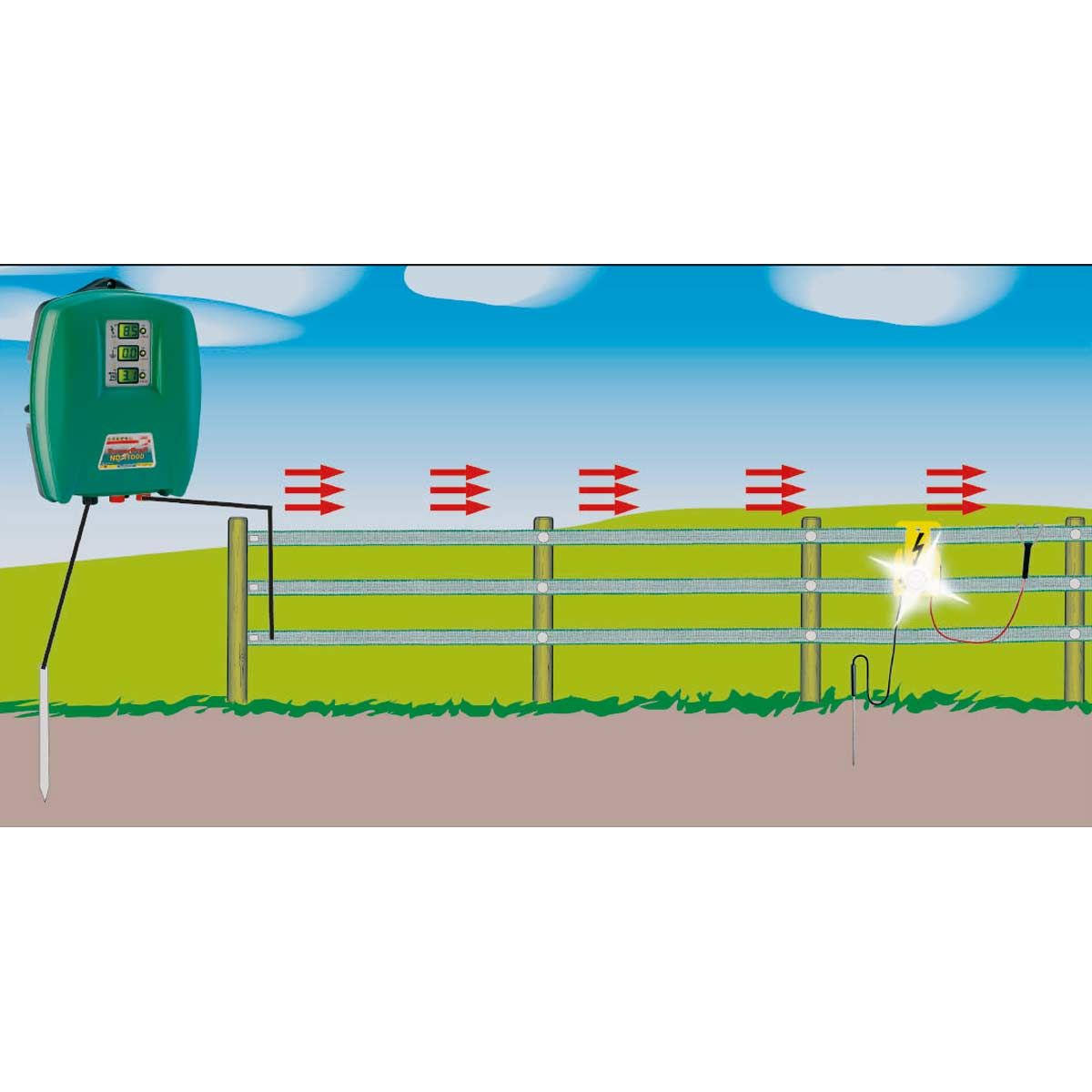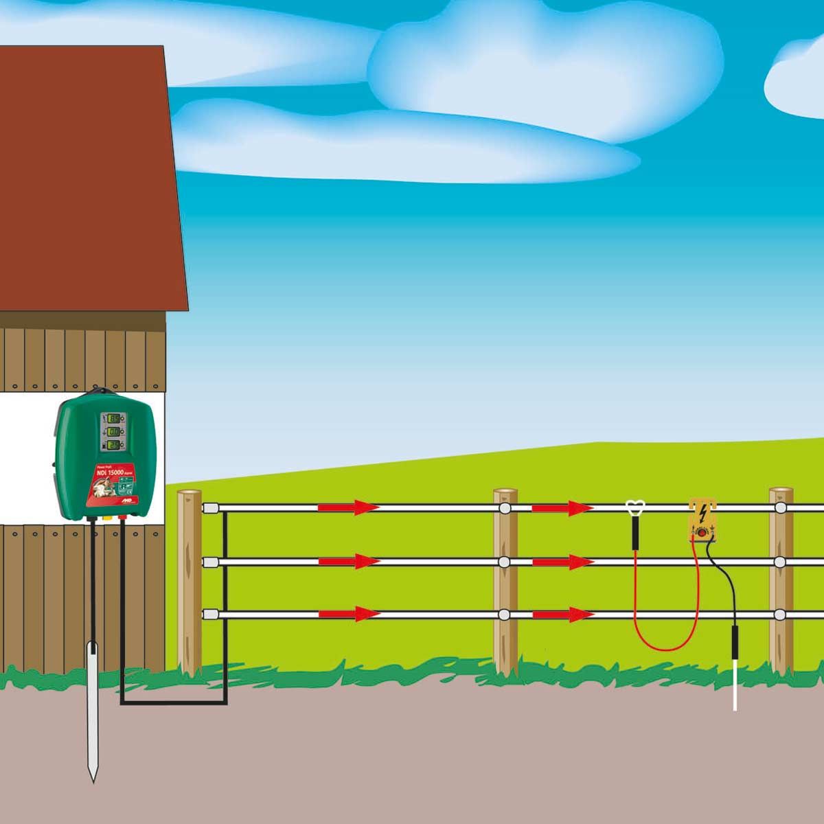 Szakértői tipp: Helyezze a villanypásztor jelzőfényét a kerítésrendszer végére. Így egy pillantással láthatja, hogy a kerítés végén és így a teljes rendszeren a 2500 V-os minimális védőfeszültség folyik-e.