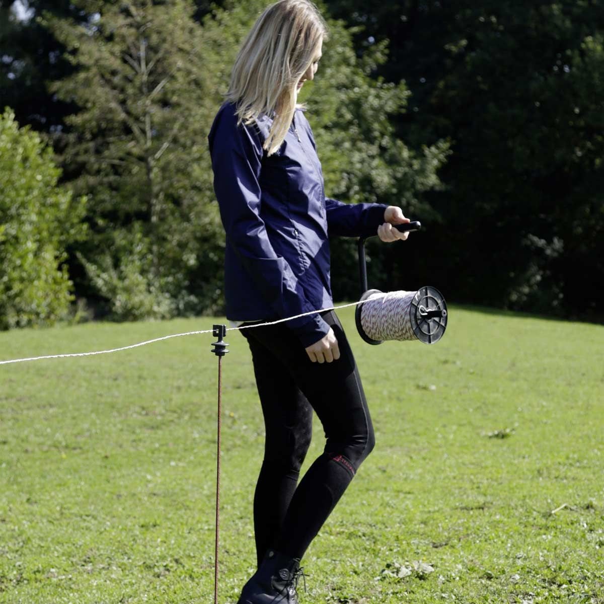 A praktikus egykezes lecsévélő ideális a legelőkerítésen lévő létraanyaggal való munkához. Megkönnyíti a biztonságos kitekerést, és lehetővé teszi, hogy a szálakat, köteleket vagy szalagokat egyszerre akasszák be a villanypásztor szigetelőkbe. A tekercselőberendezés univerzálisan használható, és legfeljebb 250 mm magas vagy 3 kg súlyú tekercsekhez alkalmas.