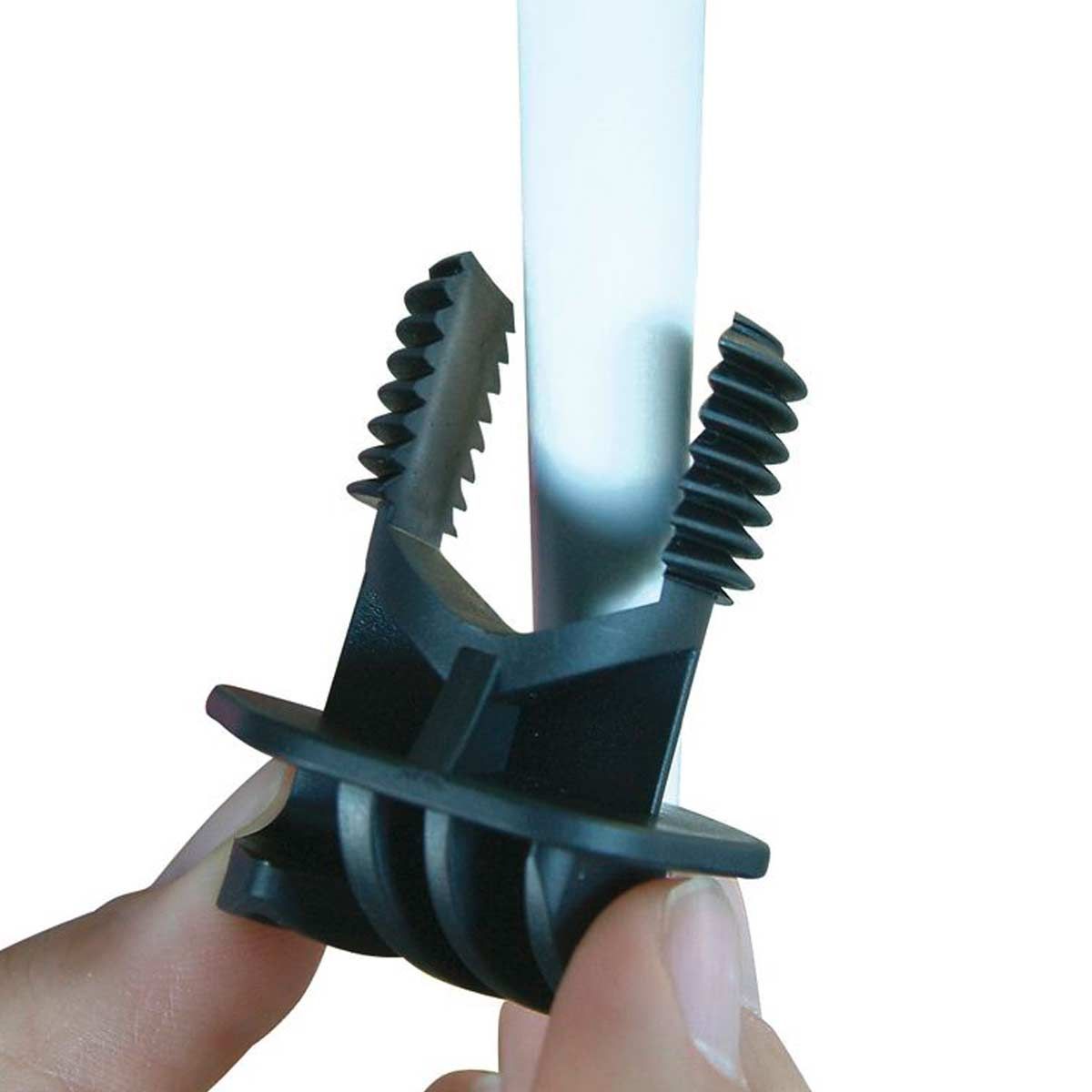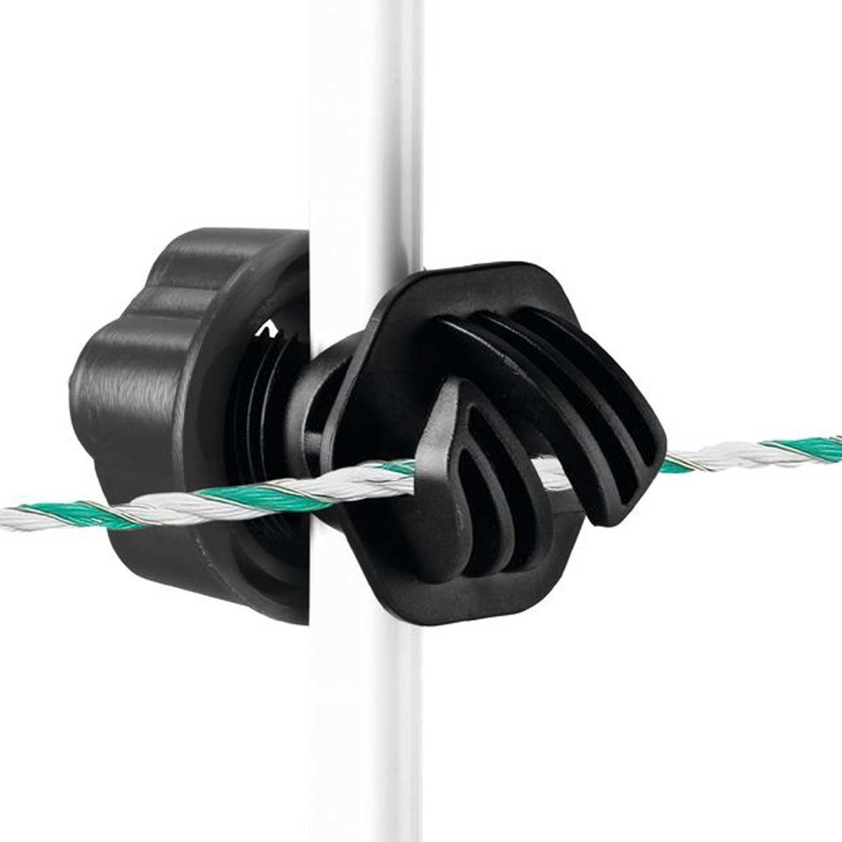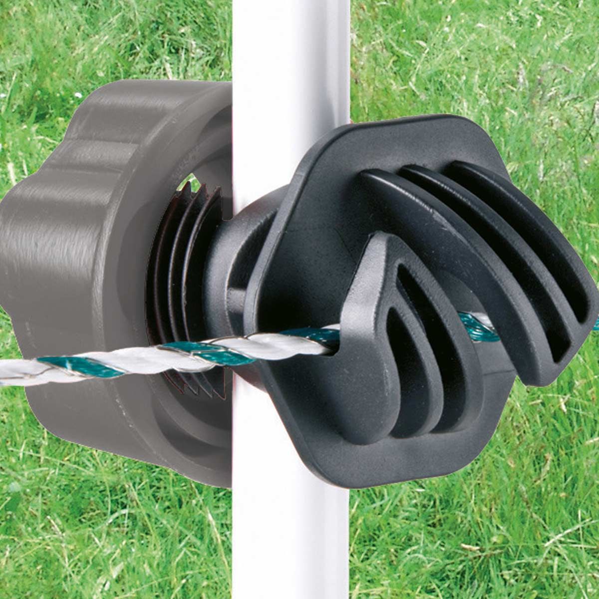 A szigetelő alkalmas minden szokásos fém- vagy műanyag oszlophoz, 6-17 mm átmérővel. A csavarszigetelőt az oszlop oldalához rögzítik, és egyszerűen becsavarják. A szabadalmaztatott csavarszigetelő ütésálló műanyagból készült, és rendkívül robusztus.