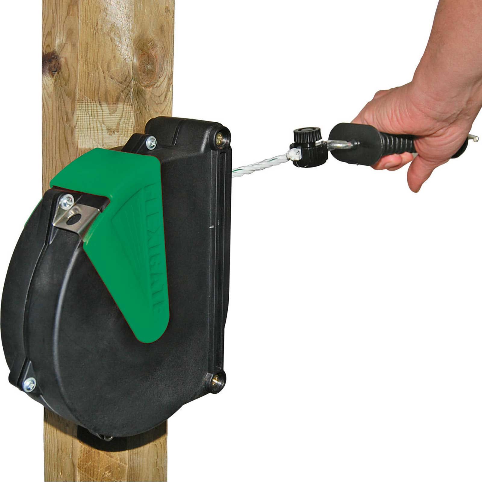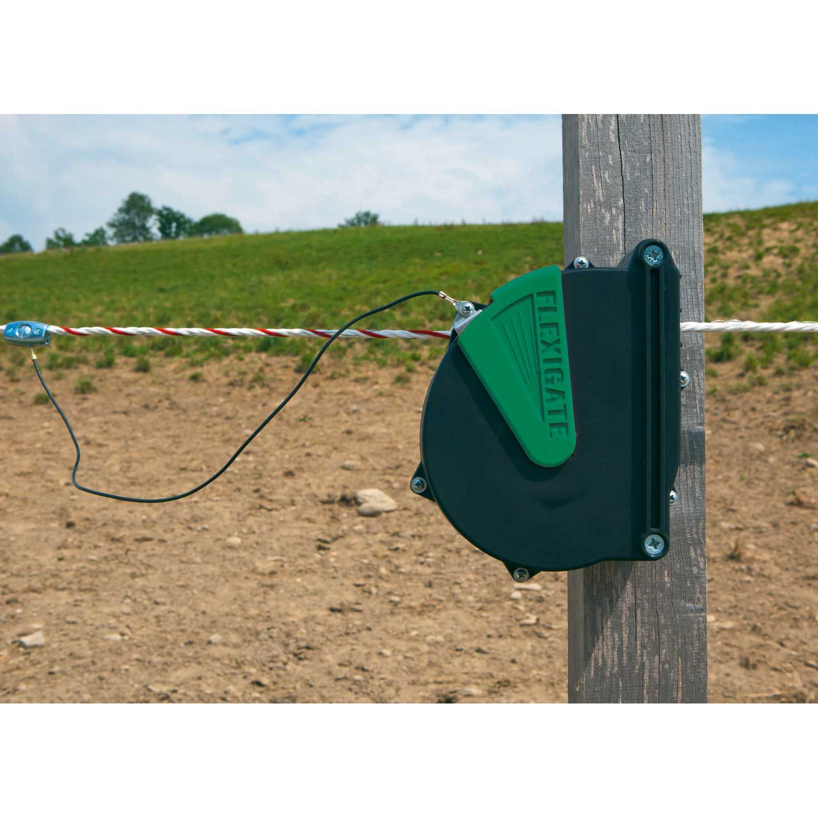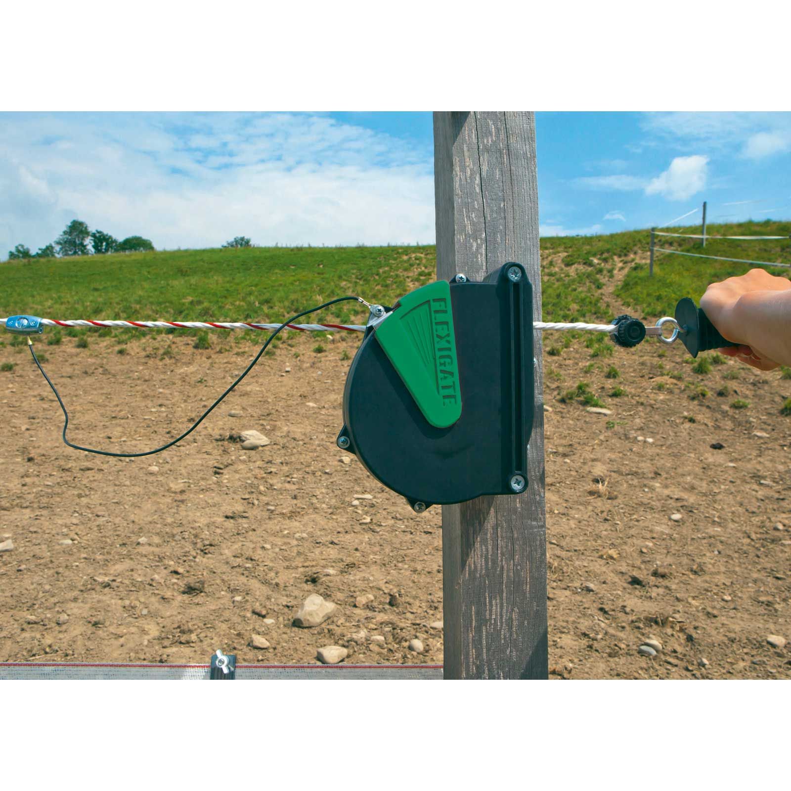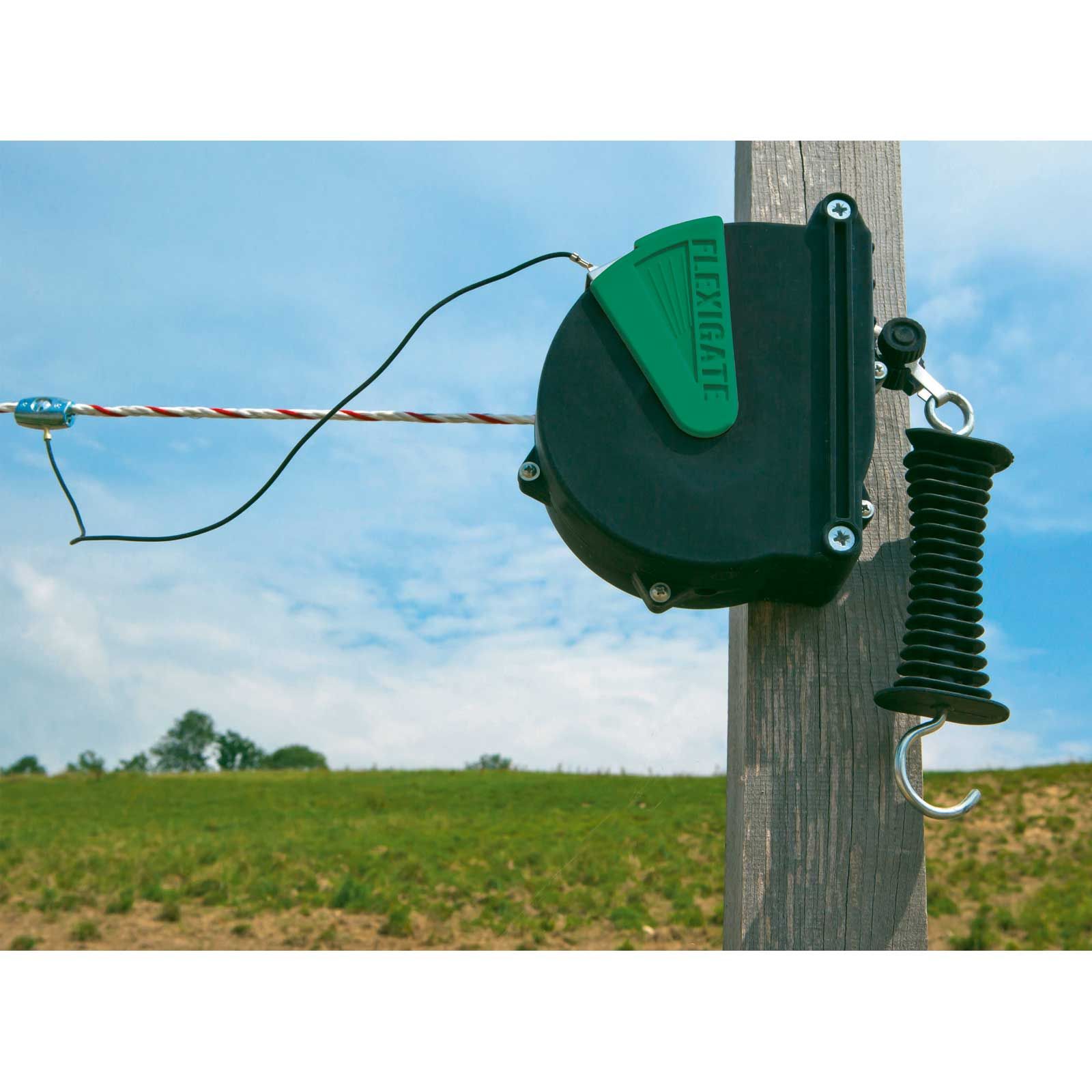 A flexikapu kapurendszerrel egyszerűen és kényelmesen villamosíthatja a legelő kerítésének páros bejáratait. A kapu minden egyes nyitásakor az elektromos kábelt egy acélrugó tekeri fel.