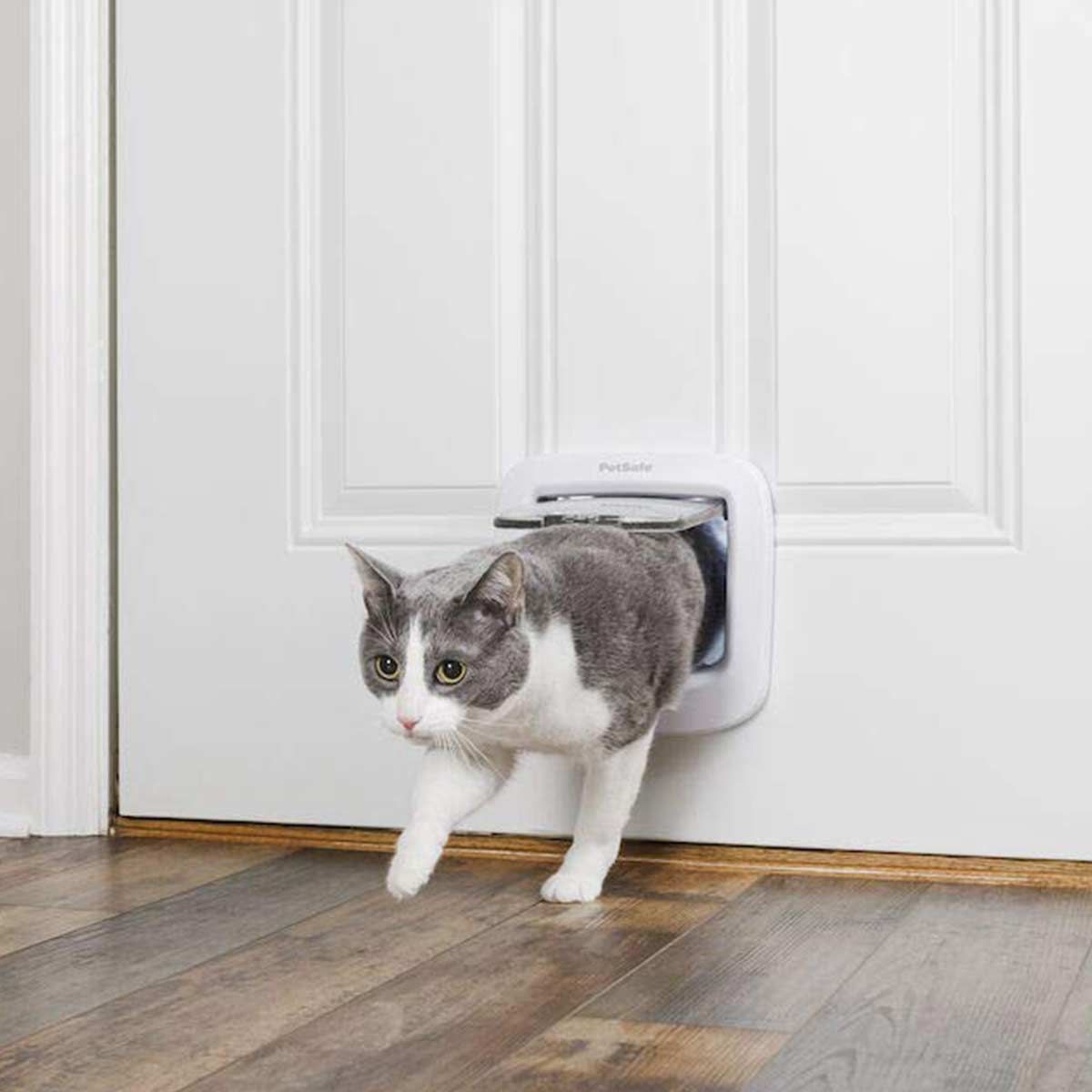 A strapabíró PetSafe macskaajtó egy kézi macskaajtó négy lehetséges zárási lehetőséggel.
